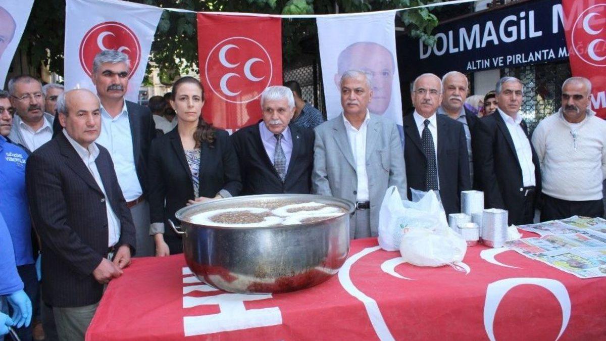 Milliyetçi Hareket Partisi Adıyaman Kadın Kolları Başkanlığı tarafından 2 bin kişilik aşure dağıtımı yapıldı.Muharrem ayı dolayısıyla MHP Kadın Kolları Başkanlığınca MHP il binası önünde gerçekleştirilen aşure programına MHP Adıyaman İl Başkanı Hüseyin Özgün, Kadın Kolları Başkanı Esma Uçar Gürbüz, partililer ve vatandaşlar katıldı.Birlik ve beraberlik mesajlarının verilmesi sonrasında programa katılan vatandaşlara aşure ikramında bulunuldu.