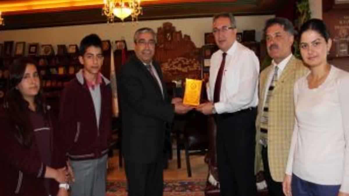 Mihriban Emin Günel İlköğretim Okulu Müdürü Halil Yolveren, Fen Bilgisi öğretmeni Sibel Bereket ve Türkçe öğretmeni Kayhan Emirağaoğlu ile okul öğrencileri Nevşehir Belediye Başkanı Hasan Ünver'i makamında ziyaret ettiler.
