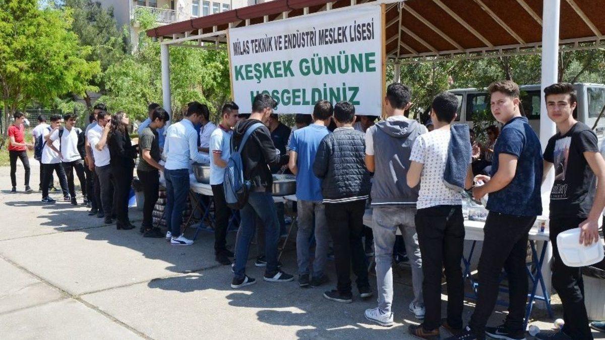 Muğla’nın Milas ilçesinde Milas Mesleki ve Teknik Anadolu Lisesi tarafından yöresel geleneklerin yaşatılması amacıyla geleneksel hale getirilen ‘Keşkek Günü’ etkinliğinin bu yıl 10’ncusu gerçekleştirildi.Etkinliğe, Milas Belediye Başkan Yardımcısı Zeynep Mat, Milas Veteriner Fakültesi Dekanı Prof. Dr. Hayrettin Akkaya, Muğla Sıtkı Koçman Üniversitesi Milas Meslek Yüksekokulu Müdürü Prof. Dr. Muzaffer Demir, AK Parti Milas İlçe Başkanı Fahri Acar, kamu kurum ve kuruluşların temsilcileri, bazı mahalle muhtarları, okul yöneticileri, öğretmenler, öğrenciler ve veliler katıldı.Düzenlenen etkinliğin açılış konuşmasını yapan Milas Mesleki ve Teknik Anadolu Lisesi Müdürü Hamit İzdaş, “Her yıl yaptığımız ve gelenek haline getirdiğimiz, okulumuzun bayramı olarak tanımladığımız keşkek günümüzün bu yıl onuncusu yapmanın sevinci, aynı zamanda yaşadığımız kayıplardan dolayı da üzüntüsü içerisinde, tüm misafirlerimize hoş geldiniz diyorum. Bugün üzüntülüyüz çünkü geçen hafta Milas Balık Festivali ve Çocuk Oyunları Şenliği Hazırlığı sırasından 2007 - 2008 mezunu öğrencimiz, Erdem Kıvrak’ı geçirdiği kaza sonrasında kaybettik. 21 Nisan Cumartesi günü 10. sınıf öğrencimiz Hasan Akkuş’u Avşar Mahallesi’nde geçirdiği trafik kazası sonrasında 17 yaşında kaybettik. Öğrencilerimize Cenab-ı Allah’tan rahmet, acılı ailelerine, sevenlerine, ilçemize ve okulumuza başsağlığı diliyorum. Yine geçen hafta 9. sınıf öğrencimiz, halk oyunları ekibimiz üyesi Okan Ertuğrul geçirdiği rahatsızlık sonucu Antalya da tedavi görmektedir, kendisine de acil şifalar diliyorum. Üzüntülü olduğumuz için bu yılkı keşkek günü etkinliğimizde halk oyunları zeybek ve Kafkas ekiplerimiz yer almayacaktır. Keşkek gününün sonunda gerçekleştirdiğimiz şenlik oyunlarının da müzikli türleri de yer alamayacaktır. Bu konuda misafirlerimizin anlayışını arz ediyorum. Bu okulun başarısı keşkekte olduğu gibi etin bulgurun yağın suyun birleşmesiyle karşılıklı sevgi, saygı ve güvenden oluşuyor. Öğrencisinin, öğretmeninin, velisinin, çalışma barışı ve huzuruyla oluşuyor. Bu uyumlu birlikteliği oluşturan tüm paydaşlarımıza teşekkür ediyorum” dedi.Okul Müdürü Hamit İzdaş’ın yaptığı konuşmanın ardından geçtiğimiz günlerde iki ayrı elim kazada hayatlarını kaybeden okul öğrencilerinden Erdem Kıvrak ve Hasan Akkuş için Kuran-ı Kerim tilaveti okunmasının ardından program, öğrenciler arasında gerçekleştirilen bilek güreşi ve halat çekme yarışmasıyla sona erdi.