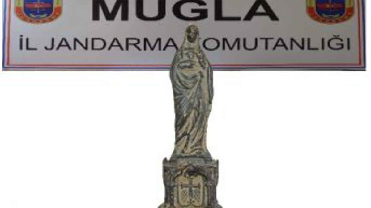 Muğla'nın Marmaris ilçesinde jandarmanın bir araçta yaptığı aramada, yaklaşık 1 milyon TL değerinde Meryem Ana heykeli ele geçirildi.Edinilen bilgiye göre, Marmaris İlçe Jandarma Komutanlığı ekipleri yapmış oldukları istihbari çalışma sonucunda, plakası daha önceden belirlenen şüpheli aracı Çetibeli Jandarma Karakol Komutanlığı kontrol noktasında durdu. Arabada yapılan aramada koltuğun altına gizlenmiş şekilde bir adet Meryem Ana heykeli ele geçirildi. Marmaris Müze Müdürlüğü yetkililerince yapılan ön incelemesinde heykelin Bizans dönemine ait olduğu, bronzdan yapıldığı ve müzede saklanması gereken eserler arasında yer aldığı belirlendi. Yaklaşık değeri 1 milyon TL civarında olduğu ifade edilen heykelin gerçek değerinin heyet tarafından belirleneceği belirtildi.Araçta bulunan Y.G. (38) ve C.G. (37) isimli şahıslar gözaltına alınırken, adli makamlara sevk edilen şüpheliler, cumhuriyet savcısının talimatıyla serbest bırakıldı. Olayla ilgili soruşturma başlatıldı.