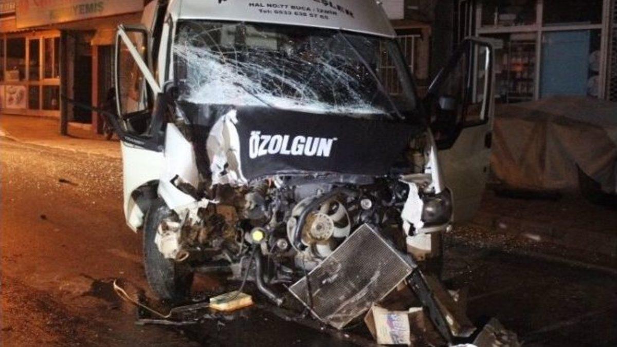 İzmir’in Karabağlar ilçesinde, bir minibüs elektrik direğine çarptı, kazada 5 kişi yaralandı.Kaza, bu gece 03.30 sıralarında Eski İzmir Pazar Yeri yanında meydana geldi. Edinilen bilgiye göre Rohat Konyar (19) idaresindeki 20 D 3905 plakalı minibüs,sürücüsünün direksiyon hakimiyetini kaybetmesi sonucu elektrik direğine çarptı. Kazada araç sürücüsü Rohat Konyar ve araçta bulunan Doğan Sekendiz, Fehmi Tayfur, Suat Gök ve Engin Konyar yaralandı. Kazayı gören vatandaşlar polis ve 112 sağlık ekiplerine haber verdi. Olay yerine gelen sağlık ekipleri yaptıkları ilk müdahalenin ardından yaralıları çeşitli hastanelere kaldırdı. Hastaneye kaldırılan yaralılardan Engin Konyar’ın hayati tehlikesinin olduğu öğrenilirken diğer yaralıların sağlık durumlarının iyi olduğu öğrenildi.Kazayla ilgili soruşturma başlatıldı.