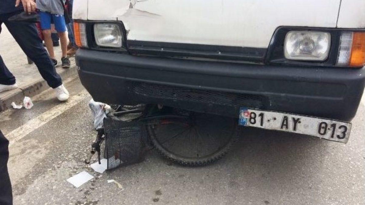 Düzce’de meydana gelen kazada 1 kişi yaralandı.Edinilen bilgilere göre, Uzunmustafa Mahallesi 15 Temmuz Şehitler Parkı önünde meydana gelen kazada, Gülseren S. idaresinde ki 81 AY 013 plakalı minibüs, bisikletiyle karşıya geçmeye çalışan Rıdvan Ö.’ye çarptı. Minibüsün çarpmasıyla birlikte bisikleti aracın altında kalan, kendisi ise asfalt zemine düşen Rıdvan Ö. yaralandı. Yaralı bisiklet sürücüsüne ilk müdahale 112 Acil Servis ekiplerince yapıldı. Atatürk Devlet Hastanesi’ne kaldırılan bisiklet sürücüsü tedavi edilirken, kazayla ilgili inceleme başlatıldı.