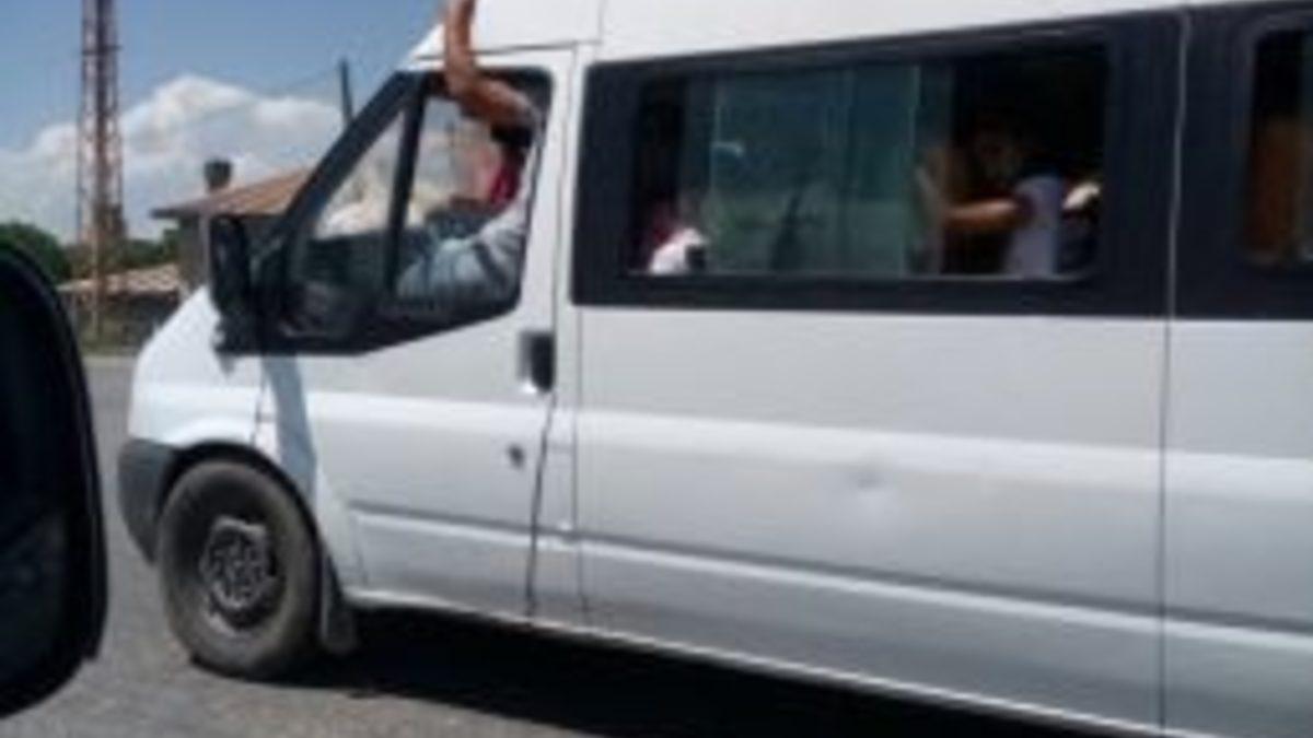 Ağrı’da yaklaşık 20 kişinin bindiği yolcu minibüsünün tehlikeli yolculuğu kameraya yansıdı.Ağrı-Erzurum şehirler arası yolda bir minibüste yolculuk yapan yaklaşık 20 kişi adeta kazaya davetiye çıkardı. Özellikle minibüsün şoför mahallinde oturan 5 yolcudan birinin, vucudunun yarısını dışarıya çıkartarak minibüsün tavanından tutunarak yolculuk yapması korkuttu.Minibüsün şoför mahallinde yolculuk yapan yolcu ve şoförün kamerayı gördüğü halde yolculuğa devam etmesi de dikkatlerden kaçmadı.
