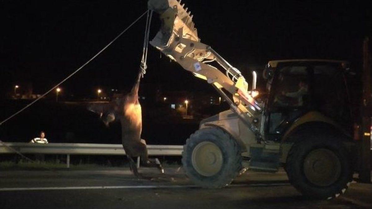 TEKİRDAĞ (İHA) – Tekirdağ’ın Çerkezköy ilçesinde minibüsün çarptığı yaralı at ölüme terk edildi. Roman vatandaşların uyutulmasına karşı çıkması üzerine belediye ekipleri yaralı atı bariyerlerin diğer tarafına bırakarak olay yerinden ayrıldı.İddiaya göre, İstanbul Kapaklı istikametinde seyir halinde olan Yaşar H. yönetimindeki 34 K 8774 plakalı minibüs, aniden yola çıkan ata çarptı. At yere yığılırken, sürücü ise aracını sağa çekerek durumu polise bildirdi. Kısa sürede olay yerine gelen polis ekipleri, araçların hızla geçtiği yolda başka bir kaza olmaması amacıyla geniş güvenlik önlemleri aldı.ATIN UYUTULMASINA KARŞI ÇIKTILARKazadan yaklaşık 1,5 saat sonra olay yerine gelen belediye ekipleri, can çekişen atı uyutup gömmek istedi. Fakat olay yerine gelen Roman vatandaşlar can çekişen atın iyileşebileceğini iddia ederek uyutulup gömülmesine karşı çıktı. Roman vatandaşların ısrarı üzerine belediye ekipleri, yaralı atı kepçe yardımıyla bariyerlerin diğer tarafına bırakarak olay yerinden ayrıldı. Yaralı atın bariyerlerin diğer tarafına bırakılması tepkiye neden oldu. Yolun kenarında can çekişen at bir süre sonra öldü.