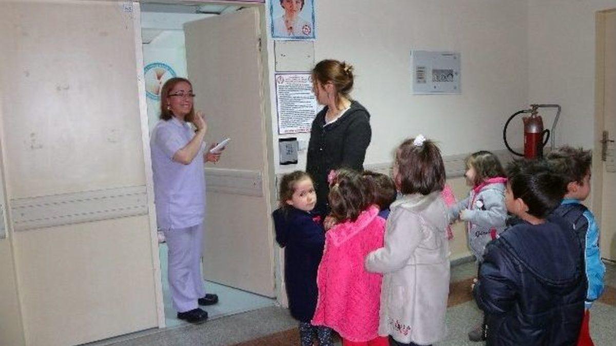 Gümüşhane Nesrin Halit Halit Zarbun Anaokulu öğrencileri öğretmenleri Güllünaz Çiçek eşliğinde Gümüşhane Devlet Hastanesi Yeni Doğan Yoğun Bakım Ünitesi ziyaret etti.Yeni Doğan Yoğun Bakım Ünitesini, sorumlu hemşire Zöhre Yıldırım eşliğinde gezen öğrenciler doktorlara merak ettikleri soruları sormayı da ihmal etmedi.Minik öğrencilerin sorularını yanıtlayan Çocuk Doktoru Uzm.Dr. Fatma Hancı, hasta olmamaları için dikkat etmeleri gereken konular hakkında bilgi verdi.El yıkama, diş fırçalama, tuvalet temizliği, el ve tırnak bakımı, saç bakımı ve mendil kullanımının hastalıklara karşı koruyucu önlem olduğunu ifade eden Dr. Hancı, çocukların iyi öğrenebilmeleri, etkinliklerde başarılı olmaları, vücut direncinin yüksek olması için düzenli uyku alması gerektiğini belirterek çocuklara kek ve meyve suyu dağıttı.Ziyaret programında öğrenciler ayrıca Çocuk Gelişimci Nuriye Seda Kaya’yı da ziyaret etti. Kaya, öğrencilere sağlıklı olmaları ve sağlıklarına dikkat etmeleri konusunda bazı önerilerde bulunarak, “Terliyken soğuk su içmeyiniz, uyku saatinize, beslenmenize dikkat ediniz, yemek öğünlerinizi geçirmeyiniz, bol bol meyve ve sebze tüketiniz, özellikle yemeklerden önce ellerinizi yıkayınız, dişlerinizi en az günde iki kere fırçalayınız.” dedi.Okul Müdürü Akif Köse ise “Çocuklarımız bu ülkenin geleceği, çocuklarımızın sağlıklı ve bilinçli bir nesil olarak yetişmesi için tüm gücümüzle çalışıyor ve onlara destek veriyoruz. Öğrencilerimizi bilinçlendirmek adına bu gezimizde bize yardımcı olan Uzman Çocuk Doktoru Fatma Hancı’ya, Yeni Doğan Yoğun Bakım Ünitesi sorumlu hemşiresi Zöhre Yıldırım’a ve Çocuk Gelişimci Nuriye Seda Kaya’ya teşekkür ederim.” şeklinde konuştu.