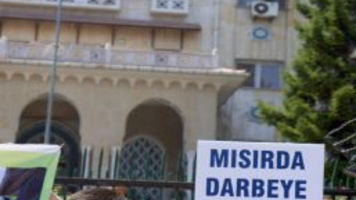 Elçilik önünde toplanan grup üyeleri, ‘Paşaların tankı yıldıramaz halkı’, ‘Diren Mursi Türkiye seninle’, sloganları atıp, ‘Mısır’da darbeye hayır’, ‘Diren Mursi’ dövizleri taşıdı. Bazı sivil toplum kuruluşları da eyleme destek verdi.