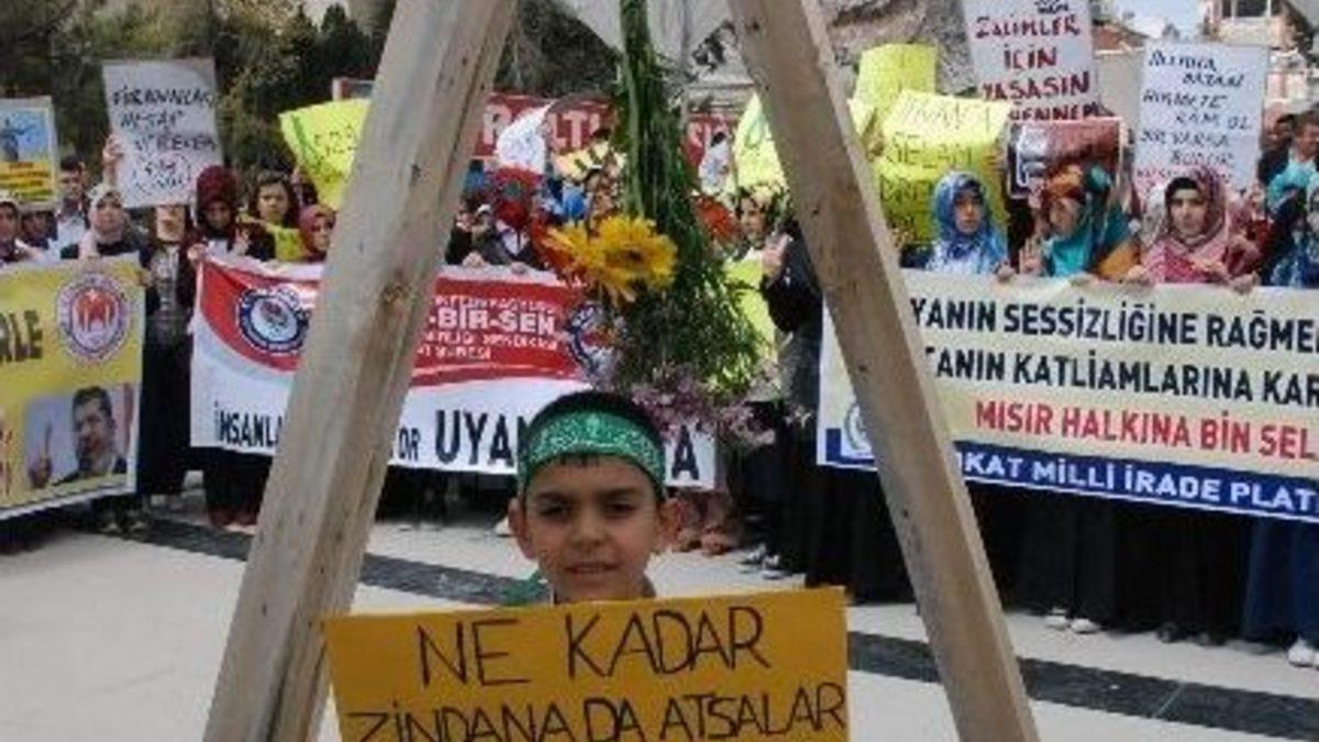 Tokat'ta sivil toplum örgütleri, Mısır'da 529 kişiye idam kararı verilmesine karşı protesto eylemi yaptı.Hüdayi Sayıbaş Yeraltı Çarşısı üzerinde düzenlenen eyleme sivil toplum örgütü temsilcilerinin yanı sıra öğrenciler de katıldı. Milli İradeye Saygı Platformu öncülüğünde düzenlenen eylemde "Rabia" işareti yapan Tokatlılar "Mursi'ye selam, direnişe devam” sloganları attı. Temsili olarak kurulan dar ağacına asılan çiçeklerin altında “Ne kadar zindana atarsalar atsalar, bizde bitmez Yusuflar” yazılı pankartı taşıyan çocuk dikkat çekti.Grup adına basın açıklama yapan İmam Hatip Lisesi öğrencisi Fatma Göl, Mısırlı mazlumların sesine ses katabilmek için tüm vicdan sahiplerini harekete geçmeye çağırdı.