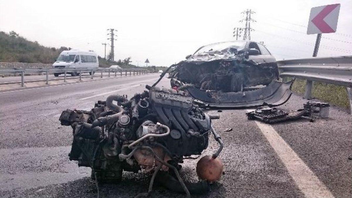 Söke-Kuşadası karayolu Soğucak yol ayrımında meydana gelen kazada kontrolden çıkrak bariyerlere çarpan aracın motoru yerinden...