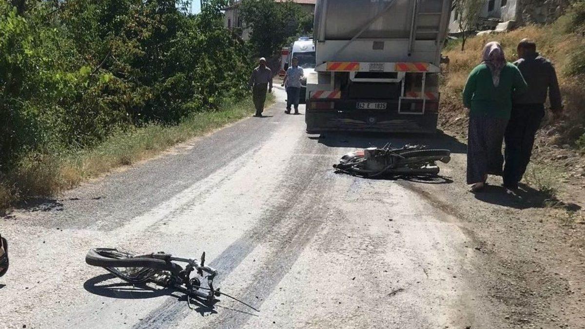 Konya’nın Halkapınar ilçesinde meydana gelen trafik kazasında 1 kişi hayatını kaybetti, 1 kişi yaralandı.Edinilen bilgiye göre, Halkapınar’dan Küsere Mahallesi yönüne seyir halinde olan ve sürücüsünün adı alınamayan 42 E 1835 plakalı süt kamyonu ile karşısından gelen Özel Mandal (40) idaresindeki motosiklet çarpıştı. Kazada sürücü Özel Mandal ile arkasında oturan Gülden Mandal yaralandı. Durumu ağır olan sürücü Özel Mandal kaldırıldığı Ereğli Devlet Hastanesinde kurtarılamayarak hayatını kaybetti.Çarpışmanın şiddeti ile motosiklet iki parçaya ayrılırken, kazayla ilgili soruşturma başlatıldı.