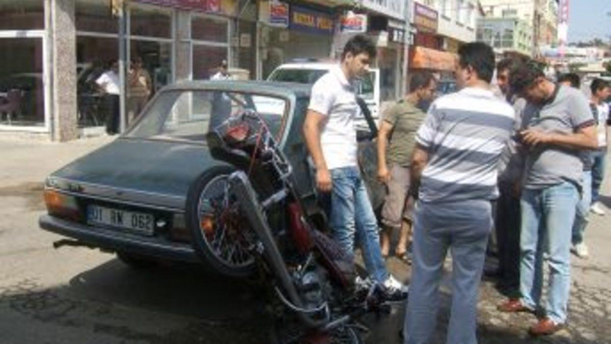Olay, bugün sabah saatlerinde yaşandı. Saimbeyli Caddesi istikametinden Adnan Menderes Parkı istikametine gitmekte olan Hüseyin Özen (22) yönetimindeki 01 Y 0589 plakalı motosiklet, yola ara sokaktan çıkan Emrah İlhan (33) yönetimindeki 01 RN 062 plakalı otomobile yandan çarptı. Motosiklet sürücüsü Hüseyin Özen ve motosiklet üzerinde bulunan babası Osman Özen motordan düşerek yaralandı. Yaralılar, Kozan Devlet Hastanesi'ne kaldırdı.
