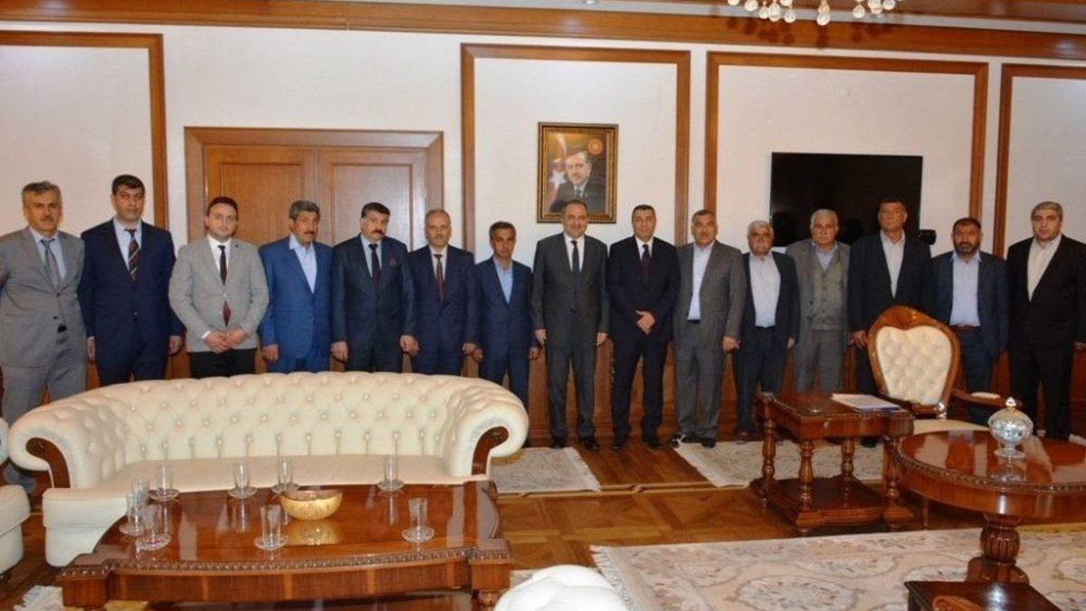 Malatya Kayısı Borsası Başkanı Ramazan Özcan ve Meclis Üyeleri, Vali Ali Kaban’ı ziyaret etti.Geçtiğimiz günlerde Malatya Kayısı Borsası Başkanlığına seçilen Özcan, yeni yöntemi Vali Kaban’ı makamında ziyaret etti. Vali Kaban’a teşekkür eden Başkan Özcan, yönetimde yer alan kurul üyelerini de takdim ederek, Malatya’nın var olan sorunlarının çözümü için ellerinden gelen gayreti göstereceklerini ifade etti.Vali Kaban, ziyaretleri münasebetiyle misafirlerine teşekkür ederek, başkan seçilen Özcan’a ve yönetim kurulu üyelerine hayırlı olsun dileklerinde bulundu.