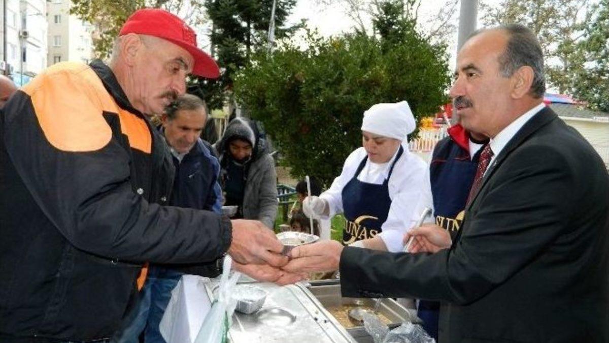 Mudanya Belediyesi halka aşure dağıttı.Mudanya Belediyesi 5 farklı noktada aşure dağıttı. Belediye önü, Halitpaşa Caddesi, Hal Kahvesi, Güzelyalı ve Tirilye’de 5 bin kişiye aşure ikram edildi. Aşureye ikramına Mudanyalılar büyük ilgi gösterdi. Güzelyalı, belediye önü ve Hal Kahvesi’ndeki aşure ikramına Mudanya Belediye Başkanı Hayri Türkyılmaz’ın yanı sıra Kaymakam Orhan Çiftçi de katıldı. Kepçeyi eline alan Türkyılmaz, kurulan kazanların başına geçerek vatandaşlara aşure dağıttı. Türkyılmaz, 5 bin kişiye aşure dağıtıklarını, bunu geleneksel hale getireceklerini söyledi.