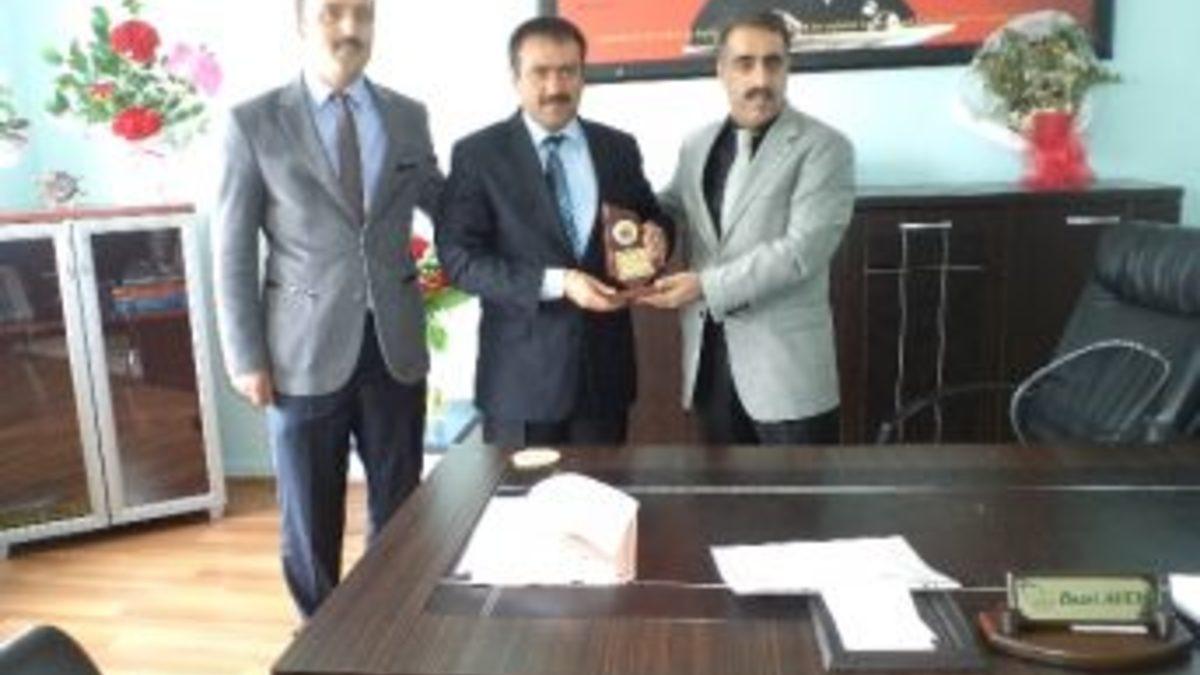 Muş’un Varto Milli Eğitim Müdürü Basri Avcı, Muş Milli Eğitim Şube Müdürlüğü görevine atanan İbrahim Tanyeri'ne plaket verdi.