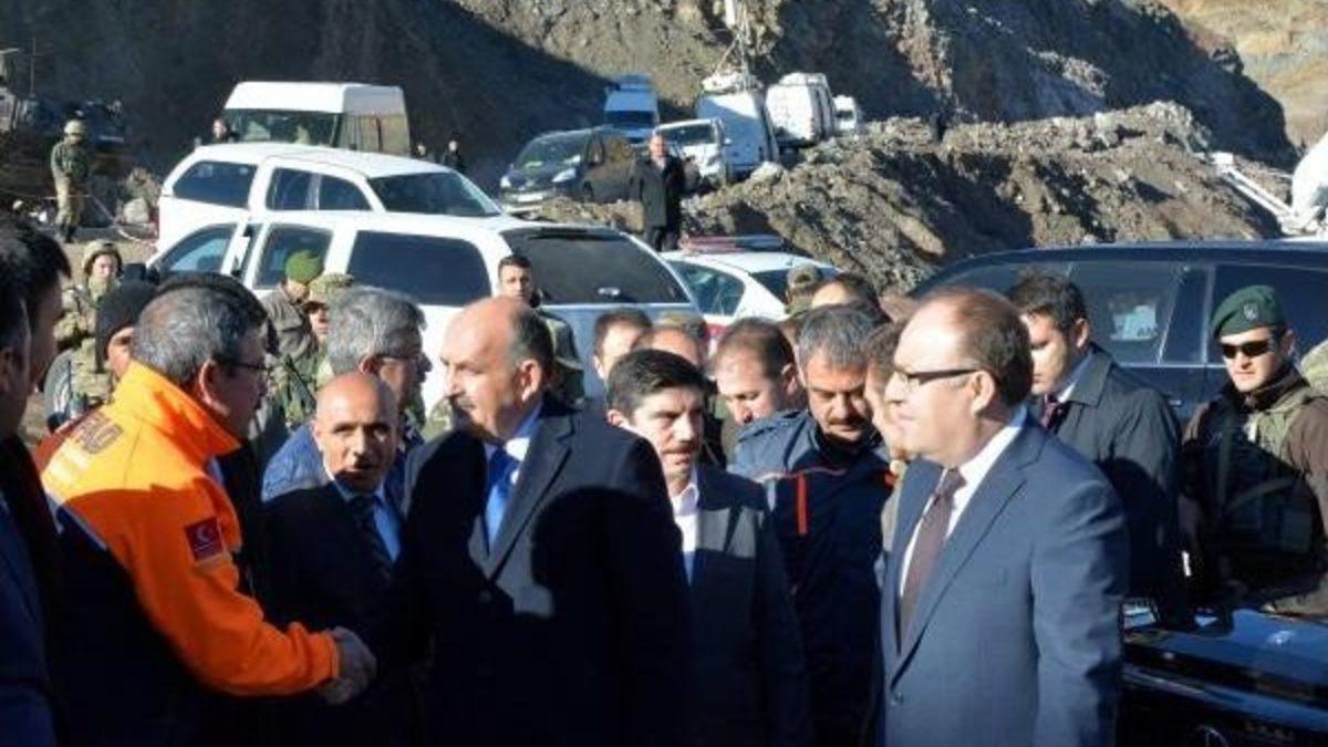 Göçük altında kalan işçi aileleri ile birlikte arama çalışmalarını yerinde inceleyen Bakan Mehmet Müezzinoğlu, "Dün Sağlık Bakanımız Recep Akdağ buradaydı. Bugün biz buradayız. İlgili bakanlıkların tüm yetkilileri ilk günden itibaren buradalar. Bir taraftan dertler, acılar paylaşıldıkça azalır anlayışıyla çalışan yakınlarımızın yanında en insanı şekilde sorumluluklarımızı yerine getirirken, diğer taraftan da sorunları çözerek azaltma gayretiyle yoğun bir çalışma yürütüyoruz" diye konuştu.