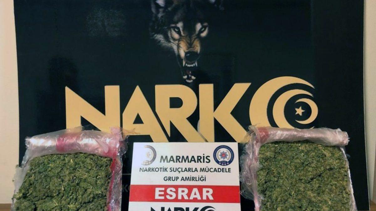 Edinilen bilgiye göre, Marmaris Cumhuriyet Savcılığından alınan talimat sonrası plakası daha önce belirlenen bir araçta uyuşturucu bulunduğu ihbarı alındı. Araçta yapılan aramada aracın arka koltuklarının arka bölümüne zulalanmış 413.9 gram esrar, 0.99 gram Bonzai ele geçirildi.