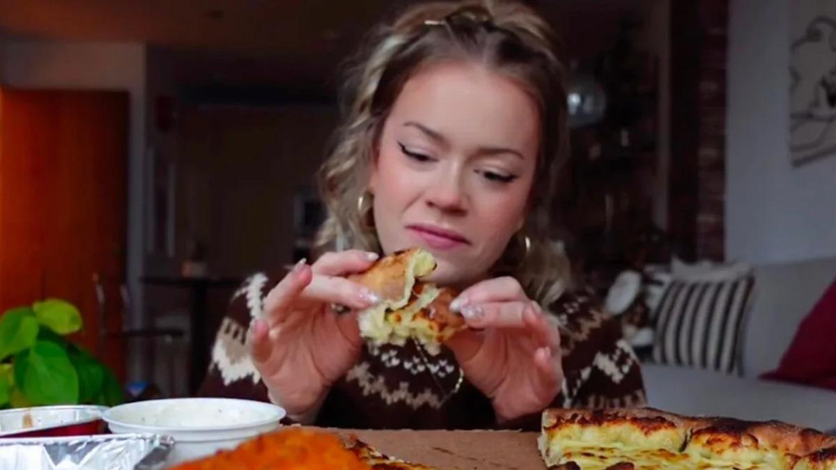 Sosyal medyada paylaşılan bir video kısa sürede gündem oldu. @kqtiewhitney adlı fenomen, ayrılık acısını anlatırken önündeki dev pizza, nugget’lar ve sosları mideye indirdi. Ancak izleyenleri asıl şaşırtan ne ayrılık itirafıydı ne de yediği yemeklerdi…