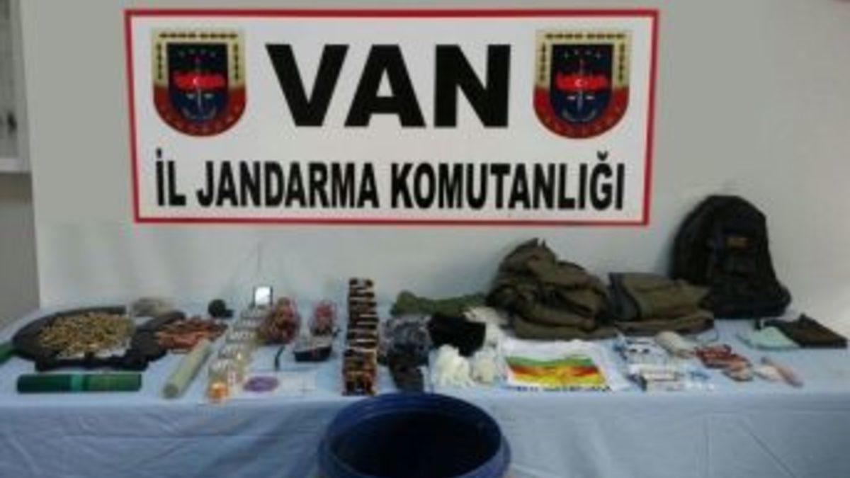Van’ın Muradiye ilçesinde güvenlik güçlerince dere yatağında silah ve mühimmat ele geçirildi.Van Valiliğinden yapılan açıklamada, “Van’ın Muradiye ilçesinde İlçe Jandarma Komutanlığına 15 Nisan 2017 günü yapılan bir ihbarın değerlendirilmesi sonucunda, Babacan Mahallesi kırsalında bir dere yatağında yapılan arazi incelemesi sonucunda;2 adet el bombası, 215 adet ak-47 Kaleşnikof piyade tüfeği fişeğİ, 340 adet M-16 piyade tüfeği fişeği, 6 adet AK-47 Kaleşnikof piyade tüfeği şarjörü, 3 adet EYP düzeneği, 3 adet roketatar sevk fişeği, 1 adet keskin nişancı dürbünü, 1 adet sırt çantası, 1 adet radyo, 2 takım terörist kıyafeti, 2 adet cep telefonu bataryası ile çok miktarda EYP düzeneği yapımında kullanılan elektronik malzeme ve tıbbi malzeme, ayrıca aramanın devamında toprağa gömülü olarak patlamaya hazır içi patlayıcı dolu 6 adet büyük tüp ele geçirilmiştir” denildi.