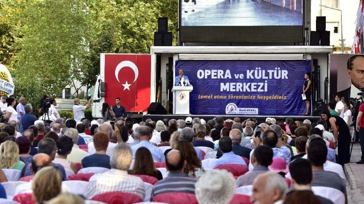 Muratpaşa Belediye Başkanı Ümit Uysal, 17 milyon 849 bin TL’ye mal olacak Çok Amaçlı Gösteri Merkezi’nin Türkiye ölçeğinde kültür ve sanat alanında önemli yatırımlardan bir tanesi olduğunu söyledi.Muratpaşa Belediyesi’nin 17 milyon 849 bin TL yatırım maliyeti bulunan 658 seyirci kapasiteli salonlara sahip Çok Amaçlı Gösteri Merkezi - Opera ve Tiyatro İşliği temeli düzenlen törenle atıldı. Yeşilbahçe Mahallesi’nde düzenlenen törene Antalya Ticaret ve Sanayi Odası (ATSO) Başkanı Çetin Osman Budak, Mimarlar Odası Antalya Şube Başkanı Özge Köksal, İnşaat Mühendisleri Odası Antalya Şube Başkanı Mustafa Balcı, Ziraat Mühendisleri Odası Antalya Şube Başkanı Vahap Tuncer, İl Emniyet Müdür Vekili Mehmet Can Gencer ve Muratpaşa İlçe Emniyet Müdürü Sinan Demir, CHP İl Başkanı Mustafa Erdem, CHP Muratpaşa İlçe Başkanı Ahmet Kumbul ve vatandaşlar katıldı.Kültür ve Sanata yatırımBelediye Başkanı Ümit Uysal, sanatın bir şehri şehir yapan, ona içerik ve derinlik katan toplumsal bir boyuta sahip olduğunu söyledi. 5 bin 420 metrekare inşaat alanına sahip Çok Amaçlı Gösteri Merkezi’nin gerek yatırım maliyeti gerekse salonlarıyla Türkiye ölçeğinde kültür ve sanat alanında önemli yatırımlardan bir tanesi olduğunu dile getiren Başkan Uysal, “Proje bu özelliğiyle birlikte mimari olarak da birçok özelliğe sahip. Şehirlerimizde nitelikli binalarının yapılması, çevreyi bloke etmeyen, düzgün binaların yapılması çok değerli ve önemli olduğunu düşünüyoruz. Muratpaşa Belediyesi Çok Amaçlı Gösteri Merkezi’nin Antalya’mızda, Muratpaşa’mızda gönül zenginliğinin, estetiğin, inceliğin gelişmesine katkıda bulunmasını temenni ediyorum. Kent olabilmenin, kent kültürünün parçası olmasını istiyoruz. Buranın sadece bir bina değil, ruhu olan, ruh taşıyan ve ruh veren bir mikan olmasını temenni ediyorum.”Başkan Uysal’a teşekkürMimarlar Odası Antalya Şube Başkanı Köksal ise, temeli atılan merkezin mimari projesinin Muratpaşa Belediyesi’nin Mimarlar Odası’yla düzenlendiği ulusal yarışmayla belirlendiğinin altını çizdi. Köksal, “Ortak çalışma iradesini gösteren Başkanımız Ümit Uysal’a teşekkür ediyorum. Bu tür projelerin yarışmalarla elde edilmesi mimarlar için çok önemli etki oluşturuyor, mimarlığın gelişmesinde itici güç oluyor” dedi.Konuşmaların ardından Başkan Uysal ve beraberindekiler düğmeye basarak Çok Amaçlı Gösteri Merkezi’nin temeli attı.