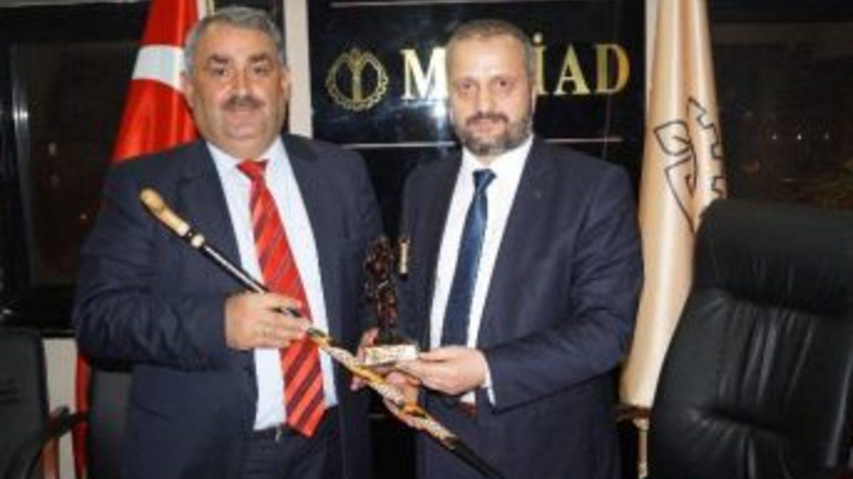 Çalışma ve Sosyal Güvenlik Bakan Yardımcısı Halil Etyemez ve beraberindekiler MÜSİAD Zonguldak Şubesini ziyaret ederek başkan ve üyelerle bir süre görüştü.İş-Kur’un düzenlediği 3. Zonguldak İnsan Kaynakları ve Kariyer Günleri etkinliğine katılmak için Zonguldak’ a gelen Çalışma ve Sosyal Güvenlik Bakan Yardımcısı Halil Etyemez, Çalışma ve Sosyal Güvenlik Bakanlığı Müsteşar Yardımcısı Mehmet Selim Bağlı ile birlikte MÜSİAD Zonguldak Şubesini ziyaret etti. MÜSİAD Zonguldak Şubesi Başkanı Salih Yılmaz, yönetim kurulu üyeleri ve üyelerle bir araya gelen Bakan Yardımcısı Etyemez, yaklaşık bir saat fikir alış verişinde bulundu.AK Parti Zonguldak İl Başkanı Hamdi Uçar, AK Parti İlçe Başkanı Metin Karaduman, Memur Sen Zonguldak İl Temsilcisi Kamuran Aşkar, Zonguldak’taki bazı daire müdürlerinin de katıldığı ziyarette konuşan MÜSİAD Zonguldak Şube Başkanı Salih Yılmaz, teşriflerinden dolayı Bakan Yardımcısı Halil Etyemez ve Müsteşar Yardımcısı Mehmet Selim Bağlı’ya teşekkür etti.MÜSİAD’ın Zonguldak’ta yaklaşık 1,5 yıl önce kurulduğunu belirterek amaçlarının kent ve ülke ekonomisine katkı verecek faaliyetlerde bulunmak olduğunu ifade den Başkan Yılmaz, “Kurulalı kısa süre olmasına rağmen Zonguldak’ta MÜSİAD’ın etkinliği hissedilmeye başlandı. Kent ve ülke ekonomisine katkı sağlayacak projelerimizi hayata geçirmek istiyoruz. Zonguldak’ta kömüre bağlı bir ekonomi özel sektör girişimciliğinin yeteri kadar gelişmesine engel olmuştur. Şehrimizde girişimciliğin gelişmesi için MÜSİAD olarak elimizden geleni yapmaya çalışıyoruz” dedi.Fırsat buldukça MÜSİAD Şubelerini ziyaret ettiğini söyleyen Çalışma ve Sosyal Güvenlik Bakan Yardımcısı Halil Etyemez, “MÜSİAD bizim ve ülkemiz için önemli. Zonguldak’ın ekonomik gelir kaynağı kömür. Yeni istihdam sağlayacak kaynaklar üzerinde çalışmak lazım. Türkiye’nin marka üretmesi gerekiyor. Bunun için birlikte hareket edilirse marka üretilebilir. Güç birliği yapmak lazım. Kömür azaldıkça neyin ön plana çıkartılması gerektiğinin şimdiden araştırılması lazım” dedi.Konuşmaların ardından üyelerden gelen görüş ve önerilerin değerlendirildiği ziyaret sonunda MÜSİAD Zonguldak Şubesi Başkanı Salih Yılmaz tarafından Çalışma ve Sosyal Güvenlik Bakan Yardımcısı Halil Etyemez ve Çalışma ve Sosyal Güvenlik Bakanlığı Müsteşar Yardımcısı Mehmet Selim Bağlı’ya baston ve madenci heykeli hediye edildi.