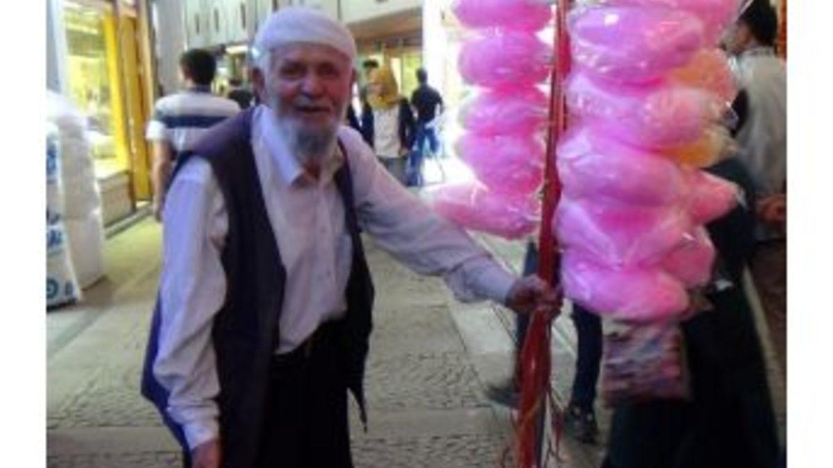 Kahramanmaraş’ta yaşayan 80 yaşındaki Mustafa Çetin, ekmeğini pamuk şeker satarak kazanıyor.Kapalı Çarşı’da 12 yıldır pamuk şekeri ve uçan balon satarak geçimini sağlayan Mustafa Çetin, ekmeğini alın teri ile kazanıyor. Herhangi bir sosyal güvencesi olmadığını belirten Çetin, kirada oturduğunu ve yalnız yaşadığını söyledi.Çocuklarının kendisini terk ettiğini ifade eden Çetin, yaşadığı sıkıntılara aldırmadan nafakasını çıkarmaya çalıştığını anlattı. Çalışma azmiyle de görenlerin takdirini toplayan Çetin, "Her şey çalışmakla elde edilir" dedi.Kapalı Çarşı esnafının sempatisini de kazanan Çetin, çocuklara "Al dededen şekeri" diye bağırarak onlara pamuklu şeker ve uçan balon satıyor.