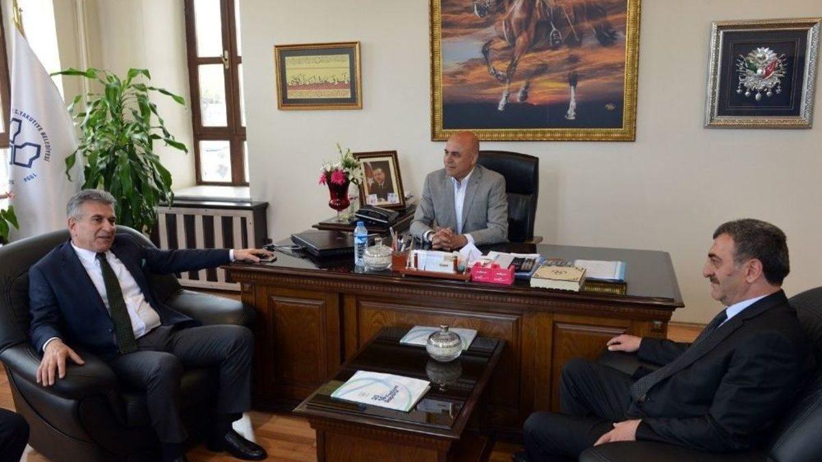 Çalışma ve Sosyal Güvenlik Bakanlığı Müsteşar Yardımcısı Serhat Ayrım, SGK haftası nedeniyle bir çalışma takvimi için geldiği Erzurum’da Yakutiye Belediyesi’nin yürüttüğü çalışmalardan etkilendiğini ifade etti. Belediye Başkanı Ali Korkut’u ziyaret eden Müsteşar Yardımcısı Serhat Ayrım, "Gezip gördüm, oldukça etkileyici işler yapıyorsunuz. Güzel ve gelişime açık bir ilçeyle karşılaştım" dedi. Ali Korkut, Müsteşar Yardımcısı Serhat Ayrım’a işlemeli Oltu taşı tespih hediye etti.Çalışma ve Sosyal Güvenlik Bakanlığı Müsteşar Yardımcısı Serhat Ayrım, SGK haftası nedeniyle bir çalışma takvimi çerçevesinde Erzurum’da inceleme ve ziyaretler gerçekleştiriyor. İş sağlığı, iş güvenliği gibi konularda işyerleri ve inşaatlarda incelemelerde bulunduğu belirtilen Müsteşar Yardımcısı Serhat Ayrım, ilçede karşılaştığı değişim ve yürütülen projelerden etkilendiği için Yakutiye Belediye Başkanı Ali Korkut’u ziyaret etti. Müsteşar Yardımcısı Serhat Ayrım, "Erzurum’un merkez ilçesi Yakutiye, dolayısıyla Belediye Başkanımız Ali Korkut’un her yaptığı önemlidir. Erzurum’un görünen yüzü bir ilçede kentsel dönüşüm çalışmaları, Üç Kümbetler çevresinde yürütülen proje beni etkiledi. Belediye Başkanımıza bizzat yaptığı çalışmalardan dolayı teşekkür etmek istedim" dedi.Yakutiye Belediye Başkanı Ali Korkut, Çalışma ve Sosyal Güvenlik Bakanlığı Müsteşar Yardımcısı Serhat Ayrım’a işlemeli Oltu taşı tespih hediye etti. Ali Korkut, "Sayın Müsteşarım özellikle belediyeler ile ilişkilerinizde sabır çekersiniz diye size bu tespihi hediye emek istiyorum. Erzurum’umuzun önemli bir değeri Oltu taşı tespihlerimiz. Erzurum’un merkezini güzelleştirecek, kültür turizmine açabilecek projeleri gücümüz nispetinde uyguluyoruz. Şehrin dönüşümü için gecekondu ve kötü yapılaşmalarla sarılı semtleri, mahalleleri kamulaştırmak ve çağa uygun yapılaşmaya açmak gerekiyor. Bizde bunu yapıyoruz. Ziyaret ettiğiniz Yeşil Yakutiye Projemiz bunun en güzel örneğidir. Gecekondu ve kötü yapılaşmayla örülü 52 dönüm araziyi kentsel dönüşüm projemiz çerçevesinde temizledik ve güzel bir yapılaşmayı gerçekleştiriyoruz. Bütün ilçeyi güzelleştirmek, tarihi eserlerini gün yüzüne çıkarmak hedefimiz" şeklinde konuştu.