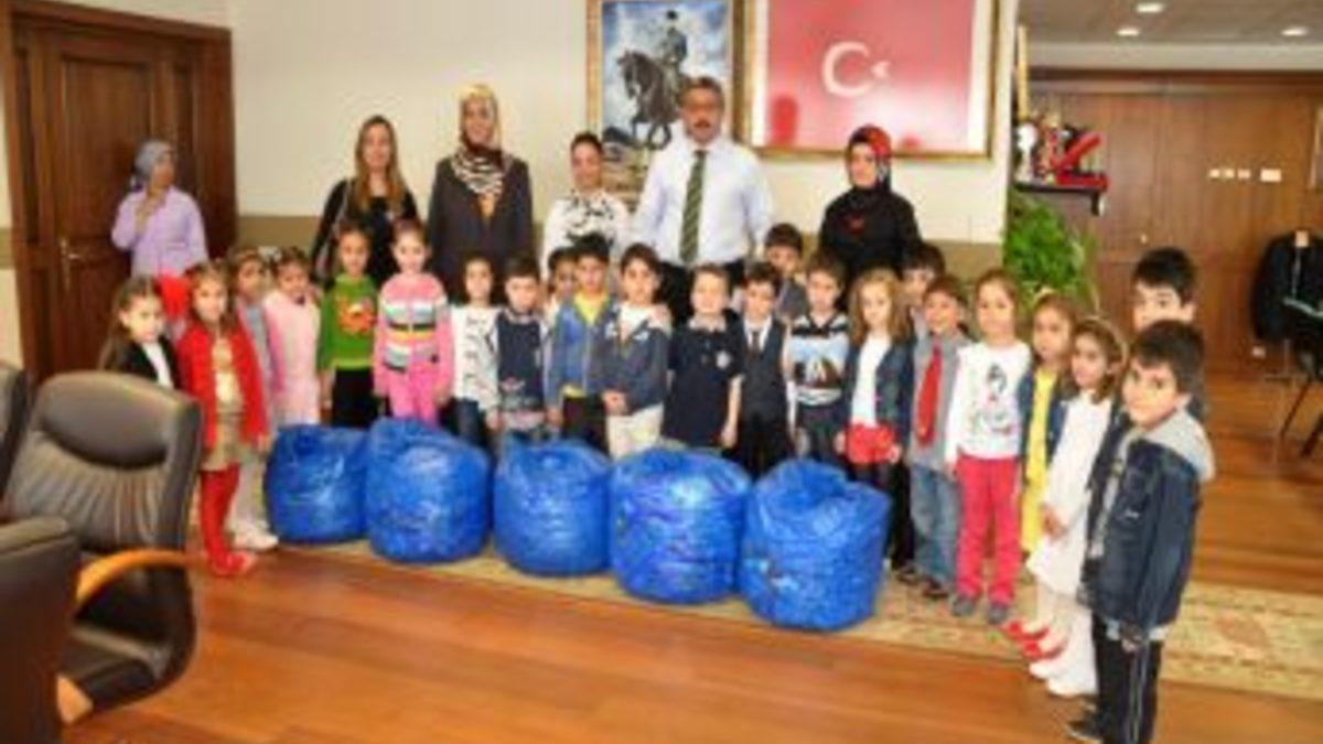Özel Gökkuşağı Kreşi'nden 23 temsilci öğrenci, Belediye Başkanı Alıcık'a topladıkları 32 bin mavi kapağı öğretmenlerinin eşliğinde teslim etti. Kreş Müdüresi Ayşe Metin, 3 ay gibi kısa bir süreç içinde 32 bin mavi kapağın toplandığını, velilerin kampanyaya çok destek olduklarını belirtti. Metin, "Aktif ve yaşayarak öğrenmeyi sağlayacak, çoklu zeka yöntemine dayalı sosyal ortam oluşturmak ve çocukların farklı gelişim özelliklerine yönelik değişik malzemelerle tanışıp, deneyim kazanmaları amacındayız. Gökkuşağı kreşi olarak sorumluluk ve iç disiplin sahibi bireyler olmalarını sağlayacak deneyimler yaşatarak sosyal, iletimsel ve özbakım becerilerin kazanılmasını sağlıyoruz. Topladıkları Mavi Kapakların da hangi amaca hizmet edeceğinin bilincinde ve ayrıca bu konu da çok duyarlılar." dedi. 10 bin kapakla 1 adet engelli tekerlekli sandalyesinin temin edildiğini belirten Ayşe Metin topladıkları 32 bin kapakla 3 adet engelli tekerlekli sandalye alınabileceğini ifade etti.