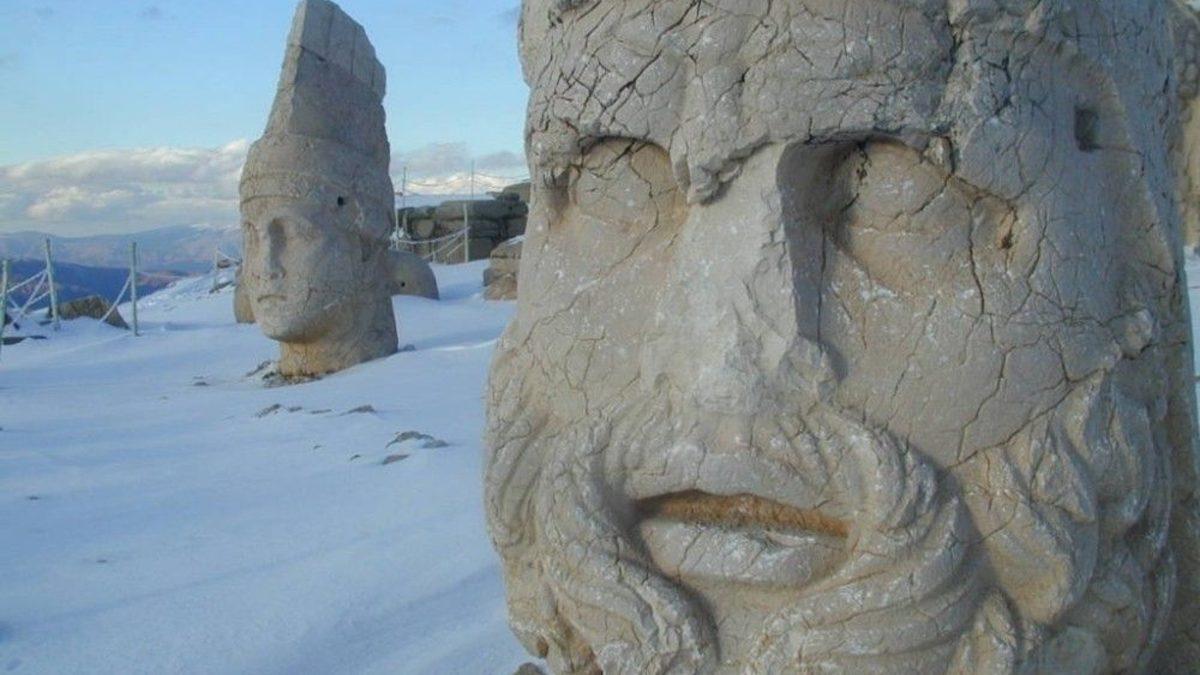 Adıyaman’da 2 bin 206 metre yükseklikteki devasa heykellerin bulunduğu Nemrut Dağı beyaza büründü.UNESCO’nun Dünya Kültür Mirası Listesinde yer alan Nemrut Dağının zirvesine yılın ilk karı yağdı. Sonbaharın son gününde beyaza bürünen Nemrut Dağına kar kalınlığı 15 santimetreye ulaştı. ‘Güneşin en güzel doğup battığı yer’ olarak nitelendirilen, yerli ve yabancı turistin ziyaret ettiği Nemrut Dağının yolu kar yağışı nedeniyle kapandı.Turizmciler kar yağışı nedeniyle zirveye çıkılmasa da, Perre Antik Kent, Karakuş Tepesi, Cendere Köprüsü, Arsemia gibi tarihi ören yerlerini görmeye gelebileceğini ifade etti.