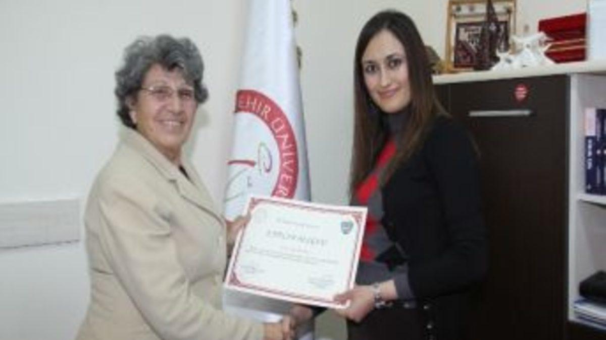 Semra ve Vefa Küçük Sağlık Yüksekokulu Müdürü Prof. Dr. Nimet Karataş, kursu başarıyla tamamlayan kursiyerleri tebrik ederek kendilerine sertifikalarını verdi.