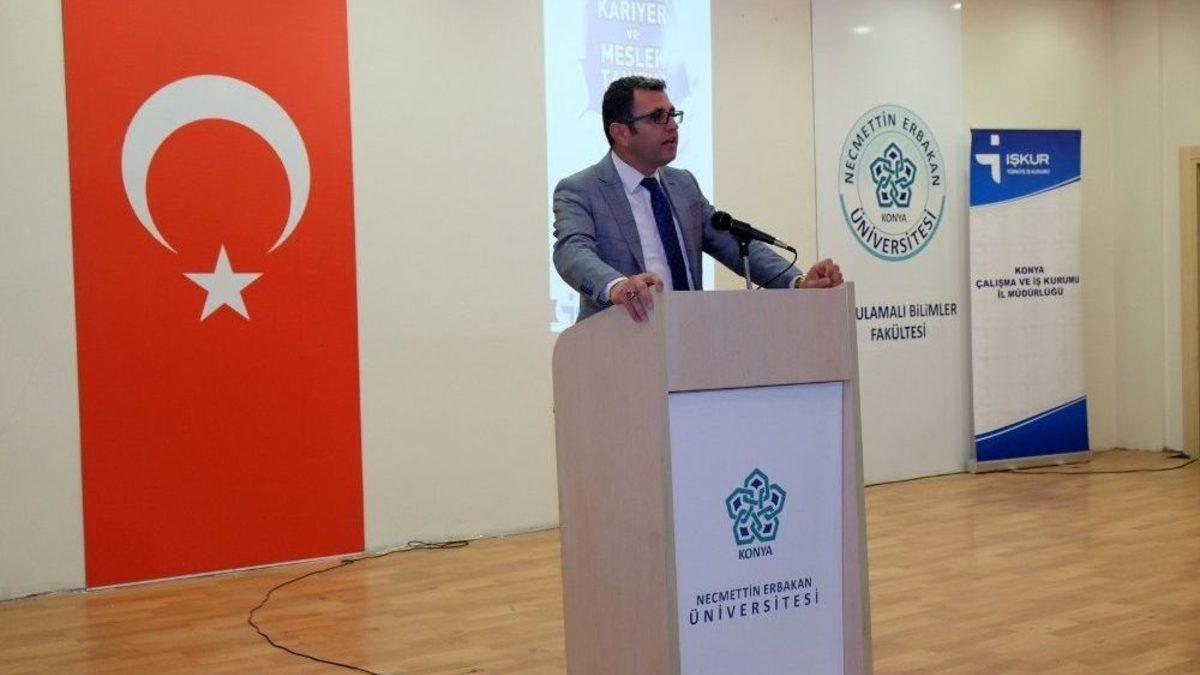 Necmettin Erbakan Üniversitesinde (NEÜ) “Kariyer ve Meslek Tanıtım Günü” etkinliği düzenlendi.Konya Çalışma ve İş Kurumu İl Müdürlüğü tarafından üniversitenin Uygulamalı Bilimler Konferans Salonunda gerçekleşen etkinliğe öğretim üyeleri ve öğrenciler katıldı.Programın açılış konuşmasını yapan Uygulamalı Bilimler Fakültesi Dekanı Prof. Dr. Ahmet Diken, yapılan çalışmalarla istihdama katkının önemli olduğunu belirterek İŞKUR’a ve Serbest Muhasebeci Mali Müşavirler Odası’na programa verdiği destekten dolayı teşekkür etti. Kariyer planlaması ve meslek seçiminin önemini vurgulayan Prof. Dr. Ahmet Diken, fakültelerini tercih eden öğrencilerin, okuldan tam donanımlı şekilde ayrılmaları için tüm imkanları seferber ettiklerini ifade ederek bu tür etkinliklerin sürdürüleceğini kaydetti.Program kapsamında İş ve Meslek Danışmanları Mehtap Bilir ve Ahmet Garip tarafından iş arama becerileri, özgeçmiş hazırlama, mülakat teknikleri ve iş görüşmelerinde dikkat edilecek hususlar anlatıldı. Program konuşmacılara plaket takdiminin ardından sona erdi.