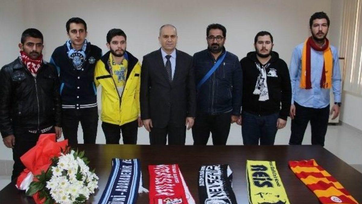 Nevşehir Hacı Bektaş Veli Üniversitesi’nde öğrenim gören taraftar grupları Nevşehir İl Emniyet Müdürü Mehmet Artunay’ı ardından ise Çevik Kuvvet Şube Müdürlüğünde görevli polisleri ziyaret etti.Nevşehir Hacı Bektaş Veli Üniversitesi (NEÜ) öğrenim gören Beşiktaş, Fenerbahçe, Galatasaray, Adana Demir Spor ve Nevşehir Spor taraftar grupları Futbol İl Temsilcisi Tolga Karaca önderliğinde hafta sonunda İstanbul Beşiktaş’ta Çevik Kuvvet polislerine yönelik yapılan bombalı saldırıyı kınamak ve polisimizin yanındayız mesajını vermek için Nevşehir Emniyet Müdürü Mehmet Artunnay’ı ve Çevik Kuvvet Şube Müdürlüğünde görevli polis memurlarını ziyaret etti.İlk olarak Nevşehir İl Emniyet Müdürü Mehmet Artunay’ı ziyaret eden yaklaşık 70 kişilik taraftar grubu burada Emniyet Müdürü Artunay’a başsağlığı dilerken her zaman Türk polisimizin yanındayız mesajını verdiler. Emniyet Müdürü Mehmet Artunay ise böylesine bir günde kendilerini yalnız bırakmayan taraftar gruplarına teşekkür etti.Emniyet Müdürü Mehmet Artuna’ı ziyaret ettikten sonra Çevik Kuvvet Şube Müdürlüğüne “Yanıyor Yüreğim Ruhun Şad Olsun Şehidim” pankartı ve sloganlar eşliğinde yürüyen taraftar grupları daha sonra burada hep birlikte İstiklal Marşı’nı okudu. Burada bir konuşma yapan Futbol İl Temsilcisi Tolga Karaca, “ İstanbul’da hafta sonunda Çevik Kuvvet polislerimize yapılan saldırı sonrasında baş sağlığı dilemek adına NEÜ taraftar grupları ile birlikte burada sizleri ziyaret etmek istedik. Bizleri kabul ettiğiniz için teşekkür ederiz” dedi. Çevik Kuvvet Şube Müdür Vekili Gökhan Özdemir ise, “Bütün taraftarlarımıza çok teşekkür ediyoruz. İnşallah bu tür olaylar bir daha yaşamayız. Ama biz yine hep beraber olalım. Yani futbol bizi hep böyle birleştirsin ayırmasın” dedi.Taraftar grupları adına bir açıklamada bulunan Üni BJK taraftar grup başkanı Özgür Cihan Doğan, “Bugün Nevşehir Hacı Bektaş Veli Üniversitesinde bulunan beş taraftar grubu olarak hep birlikte bir araya gelip Emniyet Müdürümüzü ve Çevik Kuvvet polisini ziyaret ettik. İstanbul’da yaşanan vahim olayda şehit olan polislerimiz için başsağlığı dilemek aynı zamanda acılarını paylaştığımızı göstermek için buraya geldik. Böyle kötü günlerde farklı renklere gönül vermemize rağmen buluşabiliyoruz. Hepimizin tek ortak çatısı vatan ve millettir” şeklinde konuştu.