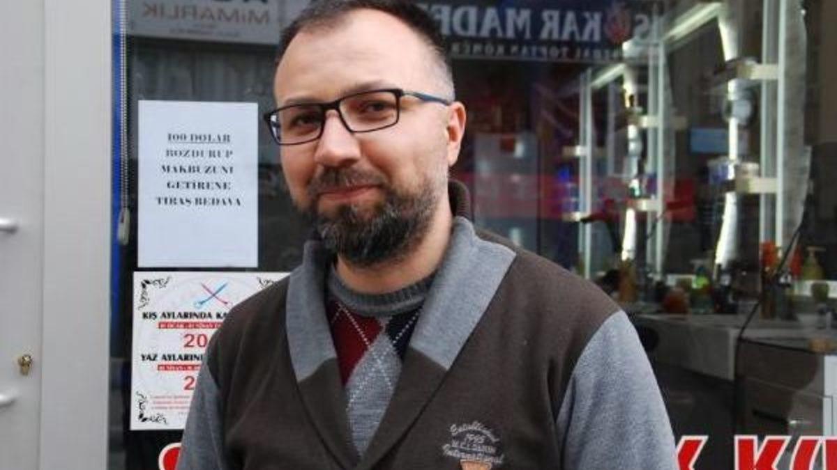 Adnan ÇELEBİ/NİĞDE, (DHA)- NİĞDE'de bir erkek berberi, 100 dolar bozdurarak, makbuzunu getirenleri ücretsiz tıraş etmeye başladı.