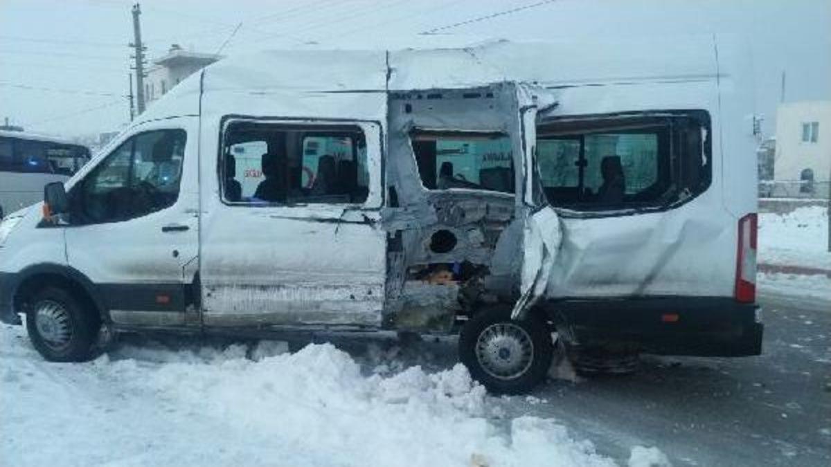 Ali KADI/NİĞDE, Sabah saatlerinde İlhanlı Mahallesi'nde meydana gelen kazada, yoldaki buzlanma nedeniyle Durmuş Erkan (42) yönetimindeki okul servisi, Emre Erol (22) yönetimindeki işçi servisi ile çarpıştı. Kazada şoförler Emre Erol, Durmuş Erkan, işçi Sadık Yedier (35) ile birlikte öğrenciler Habip Keser(16), Abdullah Akça (17), Çağlar Ayatar (16), Rabia Çelik (15), İnayet Aslan(15), Ayşe Avcu(16), Zeynep Altıparmak (17), Şevval Altıparmak (16) yaralandı. Çağrılan ambulanslarla Niğde Devlet ve Özel Hayat Hastanesi'ne kaldırılan yaralılar tedavi altına alındı. Yaralıların sağlık durumunun iyi olduğu belirtilirken, polis, kazayla ilgili soruşturma başlattı.