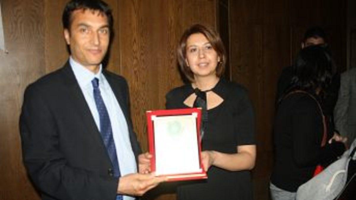 Etkinlik sonunda Rektör Yardımcısı Prof. Dr. Mustafa Bayrak, Ditaş İnsan Kaynakları Planlama ve Geliştirme Uzmanı Akal Saraçoğlu'na Ditaş çalışanları adına plaket takdim ederek teşekkür etti.