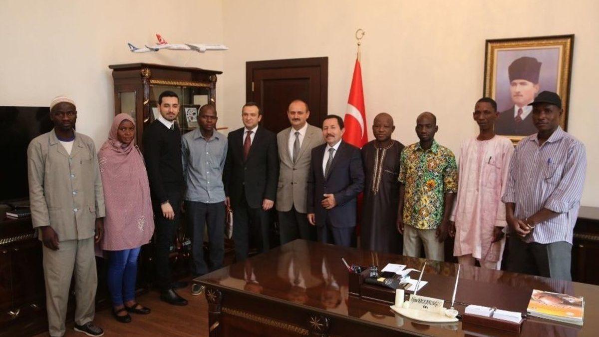 Nijer Çevre ve Kırsal Alan Gelişim Bakanlığı Arıcılık Kooperatif Başkanlarından oluşan 7 kişilik heyet, Türkiye’nin en çok bal üretilen ili Ordu’da arıcılık eğitimi aldı.Gıda, Tarım ve Hayvancılık Bakanlığı ile Başbakanlık Türk İşbirliği ve Koordinasyon Ajansı (TİKA) ile yapılan proje kapsamında Nijer’den gelen 7 kişilik heyet, bir haftalık arıcılık eğitimi aldıktan sonra Ordu Valisi İrfan Balkanlıoğlu’nu makamında ziyaret etti. Heyete ziyaretlerinden dolayı teşekkür eden Vali Balkanlıoğlu, TİKA tarafından Nijer’de arıcılığın geliştirilerek, bölge insanına geçim kaynağı oluşturulması amacıyla malzeme ve ekipman desteği sağlandığını hatırlattı. Vali Balkanlıoğlu, "Nijer’den gelen heyet Türkiye’de tek olan Ordu Arıcılık Araştırma Enstitüsünde arı üretimi ile arıcılık faaliyetlerini geliştirme konularında bir hafta süren eğitim aldı. Ordu Arıcılık Araştırma Enstitüsü önemli bir tesis. 10 milyon euro bütçesi ile, arıcılık sektöründe faaliyet gösteren KOBİ’lerin rekabet edilebilirliğini artırmak amacı ile gerçekleştirilen, yüzde 100 AB-İPA destekli sektörün en büyük projesi olan, ‘Arım Balım Peteğim Projesi’ ile yapılan tesiste eğitimler düzenlenmesi, yabancı ülkelerden arıcılıkla uğraşan kişilerin gelmesi son derece sevindirici. Nijer’den gelen misafirlerimiz de bu güzel tesiste eğitimlerini tamamlayarak dönüyor" diye konuştu.Nijer Çevre ve Kırsal Alan Gelişim Bakanlığı Orman Danışmanı Fanta Djibril ise eğitimlerin çok güzel geçtiğini söyleyerek, "Ordu çok güzel bir şehir ve insanları da sıcakkanlı. Sayın Valim sizlere de gösterdiğiniz yakın ilgi ve destekten dolayı teşekkür ediyoruz" dedi.Ziyarette, Ordu Arıcılık Araştırma Enstitüsü Müdürü Feyzullah Konak da hazır bulundu.