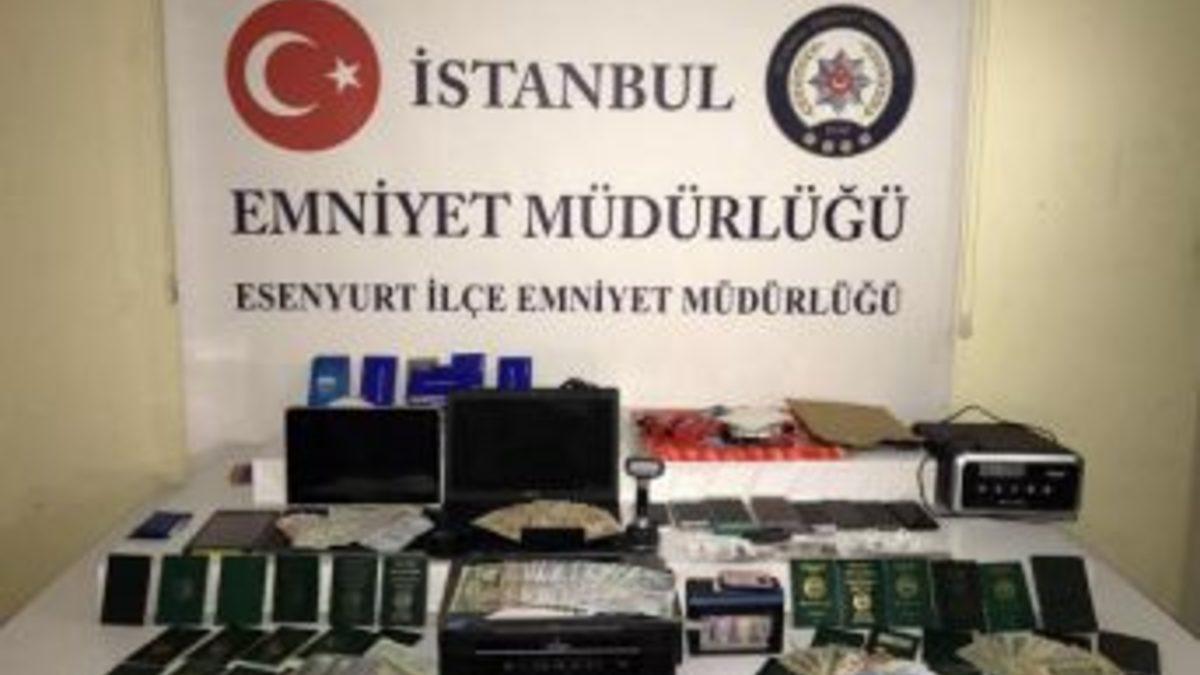 Esenyurt İlçe Emniyet Müdürlüğü ekipleri, bir rezidansta sahte pasaport yapıldığı yönündeki ihbar üzerine çalışma başlattı. Polis ekipleri yaptığı fiziki ve teknik takiple yabancı uyruklu kişilerin sahte pasaport hazırlamak için kullandığını belirlediği Barbaros Hayrettin Paşa Mahallesi'ndeki rezidans dairesine operasyon düzenledi. Operasyonda Nijerya uyruklu Micheal S., Akeem O.J., Carine J., Fidelis O.O., Oderinde A.G. yakalanarak gözaltına alındı. Polis ekipleri yaptığı aramada 34 sahte pasaport, 10 sahte pasaport yaprağı, 2 dizüstü bilgisayar, renkli yazıcı, ikamet izin kartları ile 4 bin 400 dolar, bin 350 euro ve 3 bin 310 lira ele geçirdi.