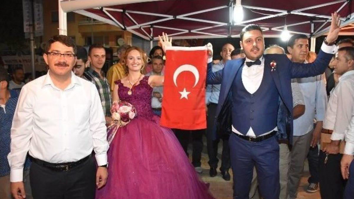 Şehzadeler Belediyesi öncülüğünde 5 gecedir Manolya Meydanında düzenlenen Demokrasi Nöbetine nişan merasiminin ardından katılan gelin ve damat adayı büyük alkış topladı. Sevdiği kız ile nişan törenin ardından Manolya Meydanına gelmekten büyük bir mutluluk duyduğunu ifade eden damat Kazım Kaya, “Cumhurbaşkanımızın meydanları boş bırakmayın çağrınsa kayıtsız kalamazdık” dedi.15 Temmuz gecesi yaşanan ve başarısız sonuçlanan darbe kalkışması sonrası Türkiye’nin dört bir köşesinde demokrasi nöbetleri tutulmaya devam ediliyor. Şehzadeler Belediyesinin öncülüğünde 5 gecedir Manolya Meydanında düzenlenen Demokrasi nöbetine her gece binlerce vatandaş sabahlara kadar meydandan ayrılmıyor. Genç, yaşlı, erkek, kadın ve engelli demeden her gece vatandaşların buluşma noktası olan Manolya Meydanı geçtiğimiz akşam farklı bir Demokrasi Nöbetine ev sahipliği yaptı. Aylin ve Kazım adındaki genç çift nişan töreninin ardından aileleri ve davetliler ile birlikte Manolya Meydanına gelerek Demokrasi Nöbetine destek verdi. Cumhurbaşkanı Recep Tayyip Erdoğan’ın meydanları boş bırakmayın çağrısına kayıt kalmadıklarını ifade eden Damat Kazım Kaya “Bu akşam nişan törenimizin ardından istedik ki nişanlım ile birlikte burada olalım, demokrasi nöbetinde halkımızın, devletimizin, hükümetimizin yanında olalım. Bu akşam burada reisimizin izinde olmaktan sizlerle bir arada olmaktan büyük bir mutluluk duyuyorum ve burada bulunana herkese çok teşekkür ediyorum. Bu ülkede böylesine güzel insanlar oldukça, bu ülkeyi bölmeyecekler. Bizler üç beş tane çapulcuya yer verecek insanlar değiliz. Her zaman Devletimizin ve Milletimizin arkasında olacağız. Baş Komutanımız Sayın Recep Tayyip Erdoğan emretti bizde meydanlara geldik. Rabbim ona sağlıklar versin” dedi.Gelin Aylin Kartal ise bir günde iki farklı mutluluk yaşadığını ifade ederek şunları söyledi:“Bu akşam bizim için bir mutluluk gecesi ayrıca burada olup halkımıza destek olmaktan daha büyük bir mutluluk duyduk”“Demokrasimize sahip çıkmak için buradayız”Nişanlı çift ve davetliler ile birlikte Manolya Meydanına gelmekten büyük bir gurur duyduğunu ifade eden Aylin Kartal’ın babası Ramazan Kahraman, “Canımın parçası kızımın ve çok sevdiğim damadımın nişan töreninden sonra demokrasiye sahip çıkmak için hep birlikte buraya geldik. Gelinimiz ile Damadımız ile sizlere ve ülkemize destek olmak için geldik. Bu vatan sahipsiz değildir. Bu ülkeyi böldürmeyeceğiz Allah’ın izniyle. Burada durarak Devletimize sahip çıktığınız için hepinize çok teşekkür ediyorum” dedi.“Milletimiz söz konusu vatan olunca meydanları boş bırakmıyor”Nişan merasiminin ardından Demokrasi Nöbetine katkı sağlamak için meydana gelen çifte teşekkür eden Şehzadeler Belediye Başkanı Ömer Faruk Çelik de şunları söyledi:“Milletimiz, Devletine, Demokrasisine davasına sahip çıkıyor. Bugün hepimizin gördüğü gibi Nişanlı çiftimiz aileleri ile birlikte nişan merasiminin hemen ardından meydana gelerek desteklerini ortaya koyuyorlar. Böylesine en önemli günlerinde bile söz konusu vatan olunca meydanları boş bırakmıyorlar. Bu akşam nişan töreninin ardından koşarak bu meydana gelen Damadımıza, gelinimize ve her iki aileye çok teşekkür ediyorum. Vatanın geleceğini bilmek, vatan için hasret taşımak budur. Tekrardan genç kardeşlerimize bu duyarlı davranışlarından dolayı çok teşekkür ediyorum”