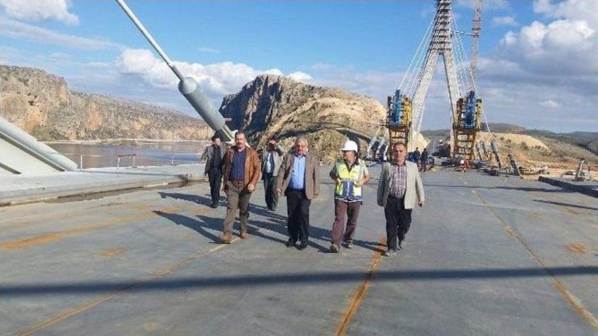 Atatürk Baraj Gölü üzerinde 2 yıl önce temeli atılarak inşasına başlanan Türkiye’nin en uzun üçüncü köprüsü Nissibi Köprüsü’nde sona gelindi.AK Parti Adıyaman Milletvekili Mehmet Metiner, Türkiye’nin en büyük üçüncü asma köprüsü olan Nissibi Köprüsü’nde yapılan inşaat çalışmalarını inceledi. Siverek ile Kahta ilçelerini birbirine bağlayacak olan 610 metre uzunluğundaki köprünün yeni yılda araç trafiğine açılması bekleniyor.AK Parti Adıyaman Milletvekili Mehmet Metiner, İl Genel Meclisi Üyesi Abuzer Yalvaç ve beraberindekilerle birlikte Siverek ile Kahta ilçelerini birbirine bağlayacak olan 610 metre uzunluğu ve 24 metre genişliği ile İstanbul Boğazı’ndaki 2 köprünün ardından Türkiye’nin en büyük üçüncü asma köprüsü olan Nissibi Köprüsü’nde yapılan inşaat çalışmalarını inceledi.İncelemenin ardından açıklama da bulunan Metiner, "Nihayet köprümüzde sona gelindi. 10 metre kadar kısa bir mesafe kaldı. Köprümüz bittiğinde özellikle Diyarbakır ve Adıyamanlı vatandaşlarımız çok rahat bir ulaşıma kavuşacak. Köprünün hizmete girmesiyle birlikte kültür ve inanç turizmi açısından zenginliklere sahip olan bölgemiz cazibe merkezine dönüşecektir" dedi.