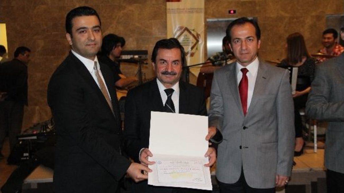 DPÜ Rektörü Prof. Dr. Ahmet Karaaslan, Muhan Soysal Bildiri Ödülünde dereceye giren “Kültürel Zekânın Kültürlerarası Liderlik Üzerine Etkisi: Çok Uluslu Bir Örgütte Uygulama” bildirisiyle Niğde Üniversitesi’nden Yrd. Doç. Dr. Faruk Şahin ve Yrd. Doç. Dr. Onur Köksal’a birincilik ödülünü takdim etti.