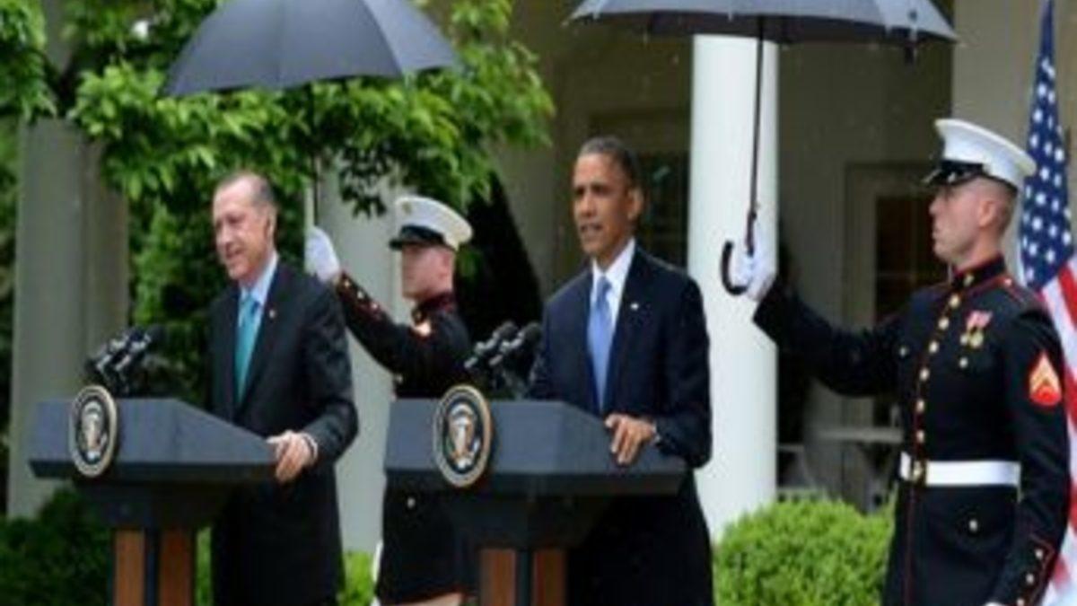 ABD Başkanı Barack Obama'nın, Başbakan Recep Tayyip Erdoğan'la yaptığı basın toplantısı sırasında yağmur başlaması üzerine...