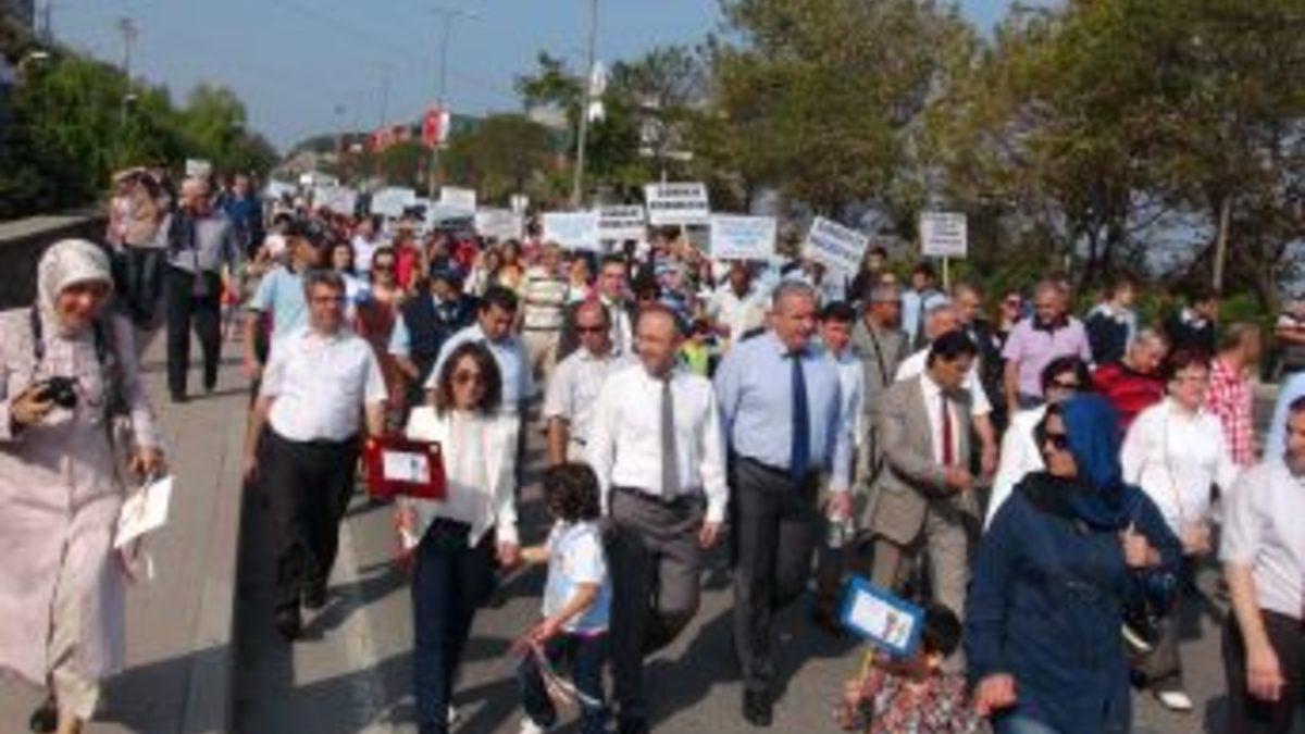 Milli Egemenlik Caddesi Hayvanat Bahçesi önünde toplanan ve aralarında İl Sağlık Müdürü Dr. Bilal Cin, İl Gençlik Hizmetleri ve Spor Müdürü Uğur Akdeniz, İl Çevre ve Şehircilik Müdürü Hasan Öztürk, İl Afet ve Acil Durum Müdürü Ahmet Güngör, Bölge Çalışma ve İşkur İl Müdürü Gönül Demirsu, İl Sosyal Hizmetler Müdürü Kemal Gümrükçü ile öğretmenler, öğrenciler ve vatandaşların da bulunduğu grup, kent merkezine doğru yürüyüşe geçti.