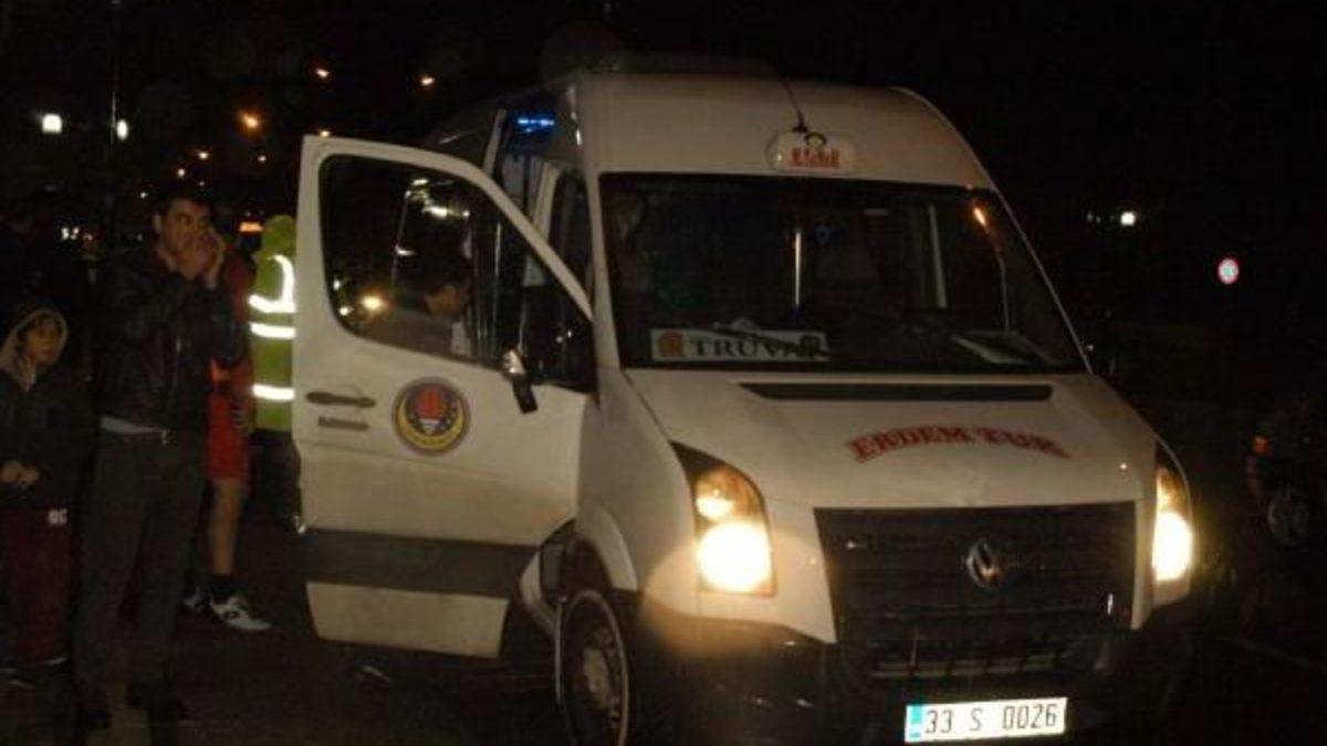 Mustafa İNSAN/MERSİN, Olay, Gazi Mustafa Kemal Bulvarı Yenişehir Kaymakamlığı önünde meydana geldi. İddiaya göre, Çankaya Ortaokulu öğrencileri taşıyan 33 S 0026 palakalı servis aracının sürücüsü 27 yaşındaki Taner Dilsiz, şehir merkezinden Erdemli İlçesi yönünda seyir halinde iken, aynı istikamete giden ve plakası açıklanmayan bir başka aracın sürücüsü 35 yaşındaki Ferit El E. ile yol verme meselesi yüzünden tartıştı. Kavagaya dönen tartışmada Ferit El E., başından darp edilerek yaralandı. Taner Dilsiz ise servis aracına binerek yoluna devam etti. Servis aracının peşine düşen Ferit El E., içerisinde yaklaşık 20 öğrencinin bulunduğu minibüse tabanca ile 2 el ateş açarak kaçtı.