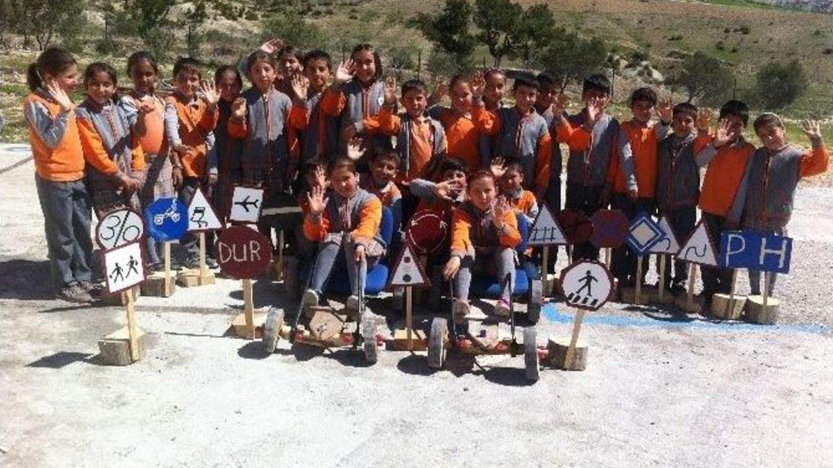 Öğrenciler Ağaçtan Yaptıkları Araçla Trafik Kurallarını Öğreniyor