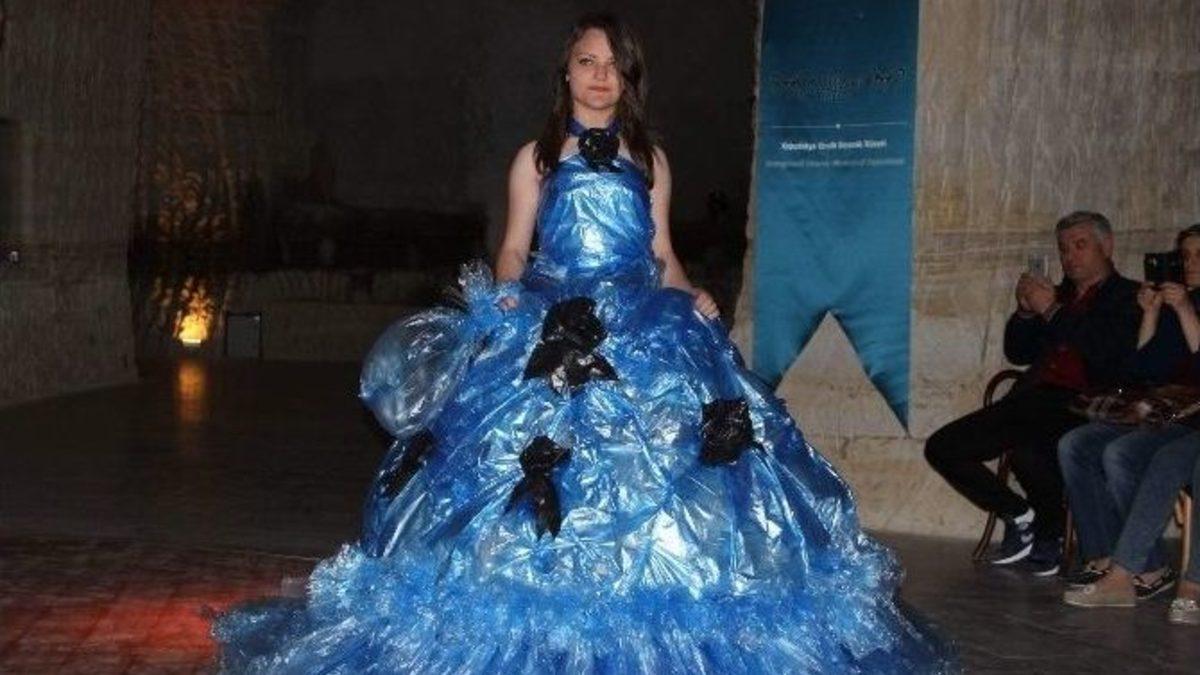 Nevşehir Nene Hatun Mesleki ve Teknik Anadolu Lisesi Giyim Üretim Teknolojisi Bölümü öğrencileri, atık maddelerden elbise tasarladı. Elbiseler, dünyanın tek yeraltı müzesi olarak tanımlanan Güray Müze’de sergilendi.Nevşehir’in Avanos ilçesinde bulunan ve dünyanın tek yer altı müzesi olarak tanımlanan Güray Müze’deki defileye Milli Eğitim Müdürü Osman Şimşek, Çat Belediye Başkanı Kamil Duru, Kavak Belediye Başkanı Celal Yiğit, okul müdürleri, öğrenci velileri ve öğrenciler katıldı. Nene Hatun Mesleki ve Teknik Anadolu Lisesi öğrencileri ’Gardrobunda Doğaya Yer Aç’ sloganıyla hazırladıkları defilede gazeteler, gazoz kapakları, çöp poşetlerinden ve diğer atık maddelerinden hazırladıkları elbiseleri sergiledi.Defile programında konuşma yapan Okul Müdürü Fatma Güneş, "Bizler Nene Hatun Mesleki Teknik Anadolu Lisesi giyim alanı olarak doğru ve iyileşmenin bir parçası ’Gardrobunda Doğaya Yer Aç’ sloganıyla bir defile hazırladık. Bu çalışmaya mekan olarak Güray Müzeyi seçtik. Çünkü dünyanın tek yer altı müzesi, çok doğal çevreci ve konuksever" dedi."ÇOK ZEVKLİ BİR ÇALIŞMAYDI"Nene Hatun Mesleki ve Teknik Anadolu Lisesi Giyim Üretim Teknolojisi Şefi Aysel Dörtkol ise, "Giyim Bölümü öğrencileri ile atık maddelerden kıyafet yapmayı tasarladık. Çocukların istekleri doğrultusunda gazetelerden, poşetlerden, gazoz kapaklarından her türlü aklınıza gelebilecek atık malzemelerden kıyafetler tasarladık. Bunun içerisinde gece kıyafetleri de var, gelinlikler de var, yelekler de var. Normal giyebilecekleri günlük etekler de var. Hatta aksesuar olarak çantayı bile değerlendirdik, kullandık. Çok zevkli bir çalışmaydı. Çocuklarımız da çok beğendiler. Sonuçları gördükleri zaman böyle bir şeyin ortaya çıkacağını düşünmediklerini söyleyerek sonuçtan çok mutlu oldular" şeklinde konuştu.Nene Hatun Mesleki ve Teknik Anadolu Lisesi öğrencisi 9. Sınıf öğrencisi Melisa Biltekin, atık maddelerden kıyafetler üretmeye çalıştıklarını dile getirerek, "Ben gazetelerden gece elbisesi tasarladım. Yani aklınıza gelebilecek bütün atık maddelerden elbise tasarlamaya çalıştık" dedi.11. sınıf öğrencisi Berna Toy ise "Atık maddelerden kendime bir İspanyol kıyafeti tasarladım. Atık maddeler aslında bize geri dönen maddelerdir. Elbise yapmayı planladığımda ilk olarak olmayacağını düşünmüştüm. Ama tasarladığımda üzerimden çıkartamayacağım kadar güzeldi" diye konuştu.