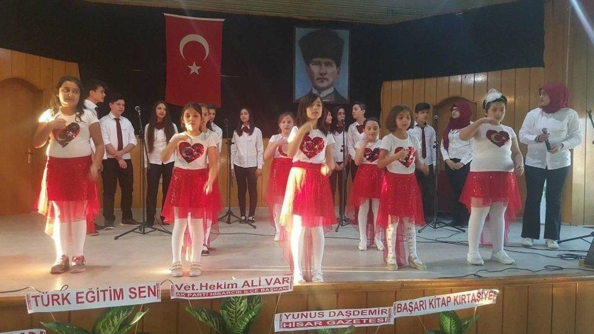 Kütahya’nın Hisarcık ilçesinde İşaret Dili Kursuna katılan Atatürk İlkokulu öğrencileri, ‘Öğretmenler Günü’ nedeniyle ‘Benim Adım Öğretmen’ şarkısını işaret dilinde seslendirerek öğretmenlerine armağan ettiler.Hisarcık Halk Eğitimi Merkezi Müdürlüğü tarafından "Okullar Hayat Olsun" projesi kapsamında açılan İşaret Dili Kursuna katılan Atatürk İlkokulu 3. ve 4. sınıf öğrencilerinin İşaret Dili Eğitmeni Pelin Solak nezaretinde ‘Öğretmenler Günü’ nedeniyle düzenlenen programda işaret diliyle seslendirdikleri ‘Benim Adım Öğretmen’ şarkısı salonu dolduran öğretmenlerden büyük alkış aldı.İşaret Dili Eğitmeni Pelin Solak, İşaret Dili Kursuna devam eden öğrencilerle Öğretmenler Gününde bir farkındalık oluşturmak adına “Benim Adım Öğretmen” şarkısını işaret dilinde seslendirerek tüm öğretmenlere armağan etmek istediklerini söyledi.Solak,”Öğretmenler Gününde öğretmenlerimize sürpriz yapmak amacıyla öğrencilerimizin 15 günlük bir süreçte azim ve gayretle çalışmaları sonucu “Benim Adım Öğretmen” şarkısını işaret dili ile seslendirdik. Umarım beğenilmiştir. Emek veren öğrencilerimizi tebrik ediyorum” dedi.(MA-EFE)