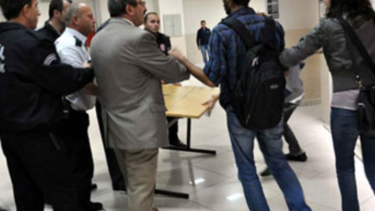 Öte yandan yine bugün Eğitim Fakültesi'nde de sinema ile ilgili aktivite yapmak için tanıtım standı açan ve kendilerini "Öğrenci Kollektifleri" olarak adlandıran 3 öğrenciye özel güvenlik personeli tarafından müdahale edildi. Tüm uyarılara rağmen stantı kaldırmayan öğrencilerle güvenlik görevlileri arasında arbede yaşandı. Öğrenciler yakapaça özel güvenlik personeli tarafından fakülte binasından dışarıya çıkarıldı.Her iki olayla ilgili 4 öğrencinin gözaltına alındığı ve soruşturmanın sürdüğü belirtildi.