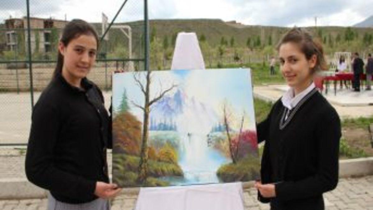 Oltu Anadolu Öğretmen Lisesi öğrencilerinin yaptığı 135 resim, okul bahçesinde sergilendi.