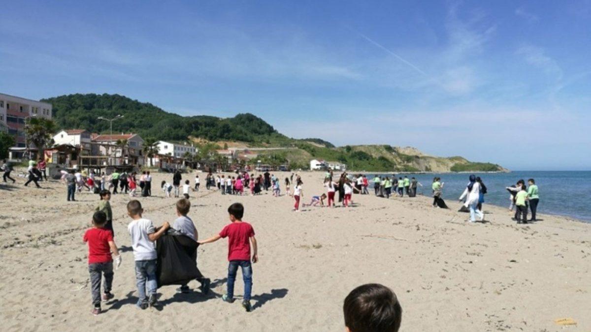 Sinop’un Türkeli ilçesine bağlı Güzelkent köyündeki Helaldı İlkokulu öğrencileri, çevre temizliğinin önemine dikkat çekmek amacıyla Güzelkent Plajı’na atılan çöpleri temizledi.