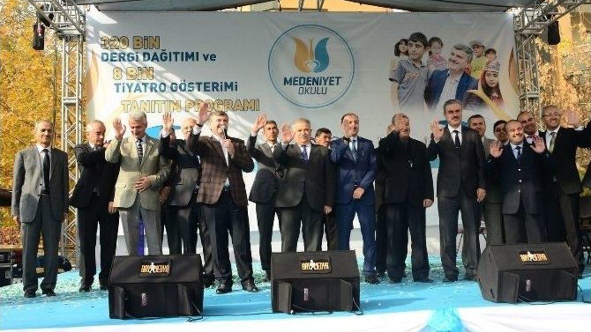 Konya Büyükşehir Belediyesi’nin çeşitli kurum ve kuruluşlarla birlikte yürüttüğü Medeniyet Okulu Projesi kapsamında 320 bin dergi dağıtımı ve 80 bin tiyatro gösterimi ile ilgili tanıtım programı düzenlendi.Niyaz Usta İlkokulu’nda düzenlenen programda konuşan İl Milli Eğitim Müdür Yardımcısı Servet Altuntaş, eğitimin ülkenin geleceği olduğunu belirterek, herkesin mevkisi ve makamı ne olursa olsun eğitime katkı sunduğu taktirde eğitimde güzellikler yakalanabileceğini söyledi.Necmettin Erbakan Üniversitesi Rektörü Prof. Dr. Muzaffer Şeker ise, Türkiye’ye ve dünyaya örnek olan Medeniyet Okulu Projesi’nin dayanışma kültürünü, çalışma azmini, bir arada yaşama gayretini destekleyeceğini; huzuru, barışı önceleyeceğini ifade etti.“MİLLİ KÜLTÜR, MİLLİ KİMLİK AKTARILIYOR“Konya Büyükşehir Belediye Başkanı Tahir Akyürek de, Konya’nın kimliğini, misyonunu, milletimizin değerlerini öğretme çalışması olan Medeniyet Okulu Projesi’nin aynı zamanda çocukların vatanını, milletini seven; ülkesi, ailesi, şehri için çalışan insanlar olmasını amaçladığını dile getirdi.Proje kapsamında Konya’nın tüm okullarında, hedef kitle olan sınıfların tamamında 8 ay boyunca her ay bir konu işleneceğini, o konuyla ilgili tiyatro gösterimi yapılacağını, dergi dağıtılacağını belirten Başkan Akyürek, bu çalışmayla öğrencilere milli kültür ve kimliğin aktarılmış olacağını ifade etti. Kasım ayının konusunun cömertlik olduğunu vurgulayan Başkan Akyürek, çocuklara cömert olmanın güzelliklerini anlattı.Konuşmaların ardından Kasım ayı programını 31 ilçede gerçekleştirecek araçlar yolcu edildi. Proje kapsamında her ay bir değerin işlendiği 40 bin, toplamda 320 bin dergi dağıtımı yapılırken 8 bin tiyatro gösterimi gerçekleştirilecek.