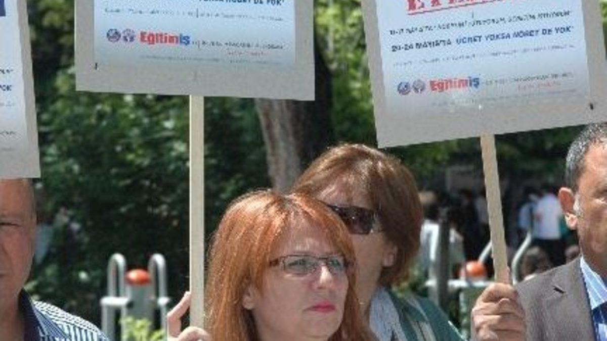 Eğitim ve Bilim İş Görenleri Sendikası (Eğitim-İş) üyeleri, Cumhuriyet Lisesi önünde bir araya gelerek ücretsiz nöbet sistemini protesto etti.