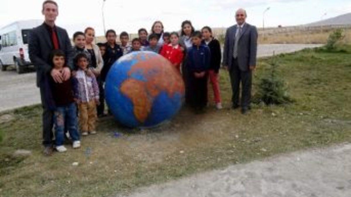 Kangal YİBO öğrencileri, Fen ve Teknoloji Öğretmeni Harun Şahinol öncülüğünde okul bahçesine büyük bir dünya küresi yaptı.